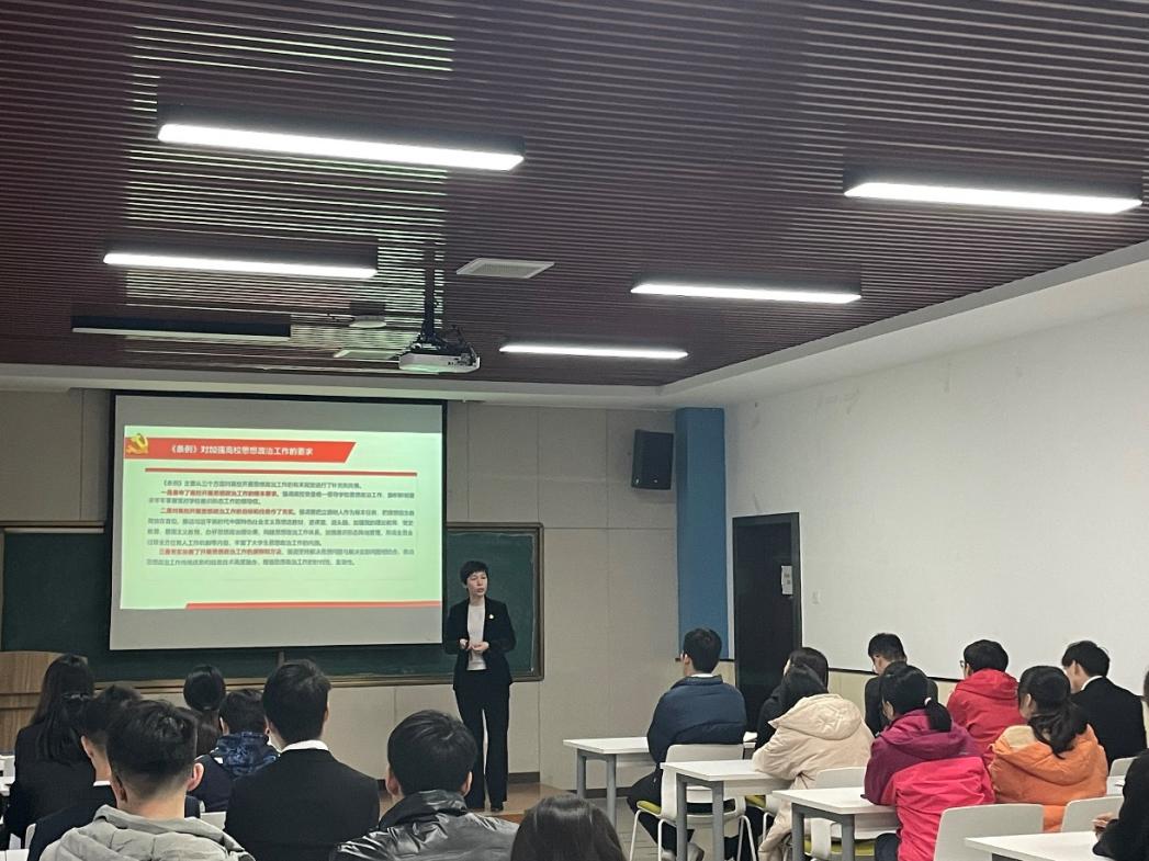 乔彩燕书记从《条例》修订的背景过程和意义、修订完善的重点内容等方面,进行了全面详细的解读。《条例》是对高校基层党组织工作做出的全面规范,旨在构建高质量的高公司党建工作体系,应当学深悟透、融会贯通。乔书记解读的同时穿插党支部知识问答帮助同学们巩固党史学习,强调党支部支委要认真学习贯彻《条例》,全面掌握《条例》内容,严格执行《条例》规定,坚持学思践悟,做到知行合一,引领员工党支部高质量发展。