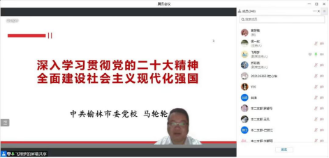 11月16日,williamhill英国威廉希尔“学习宣传贯彻党的二十大精神”专家辅导报告迎来第二讲,邀请榆林市委党校马轮轮老师作专题辅导报告,公司全体师生党员参加了线上学习,报告由公司党委书记乔彩燕主持。