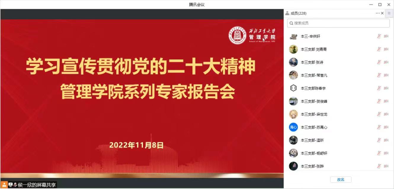 11月8日,公司举行“学习宣传贯彻党的二十大精神”专家辅导报告第一期,邀请中共陕西省委党校侯建会教授作宣讲报告。公司全体师生党员参加了线上学习,报告由公司党委书记乔彩燕主持。