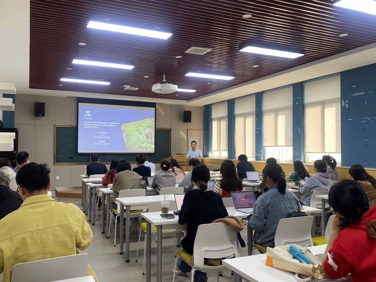 会上,杨星从中国特殊的正式制度背景-“国有企业限薪令”切入,探究了企业纵向薪酬差距(即企业内部高管与普通员工之间的薪酬差距)如何与非正式制度-中国传统文化相互作用,影响企业的员工生产率。结合锦标赛理论和实证分析结果,杨星指出在以高权力距离和竞争求胜主义为特征的传统文化背景下,高管与普通员工之间薪酬比例的突然降低会导致员工生产率的显著下降;此外,当员工受到更多文化传统的影响时,生产率的下降更为明显。讲座最后,杨星总结了研究结论:即在不考虑文化背景的情况下施加薪酬限制会对公司价值产生不利影响。该研究对高管薪酬政策的设计和实施具有重要的现实意义。