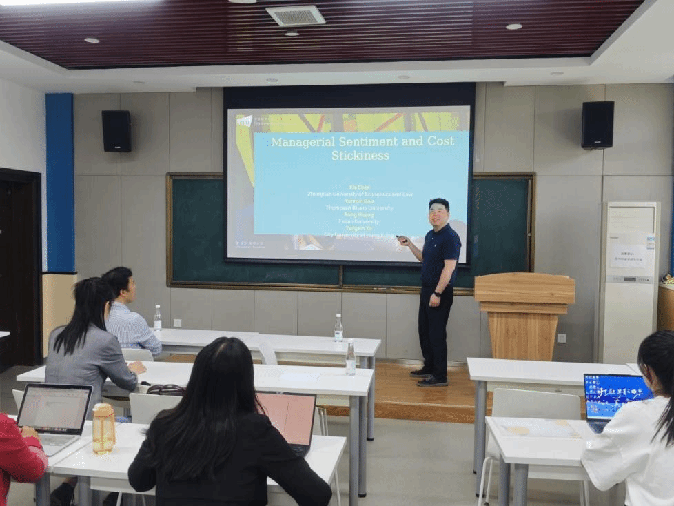 2024年4月25日上午,应williamhill英国威廉希尔邀请,香港城市大学商公司会计系余扬新教授在公司214教室作了题为“Managerial Sentiment on Firms’ cost Stickiness”的学术报告会,讲座由会计系教师封华主持,公司30余位同学和会计系、工商系10位老师参加。
