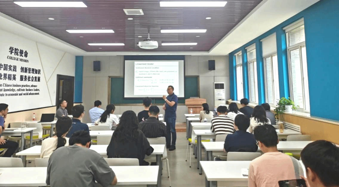 汇报结束后,同学们积极提问,储诚斌耐心解答了大家的疑惑,他认为,要具体问题具体分析,在问题构建时应根据现实场景做出合理假设。同时,算例的产生一定要能够说明问题。本次报告会,储诚斌为从事算法优化研究的师生们提供了宝贵的建议,大家受益匪浅。