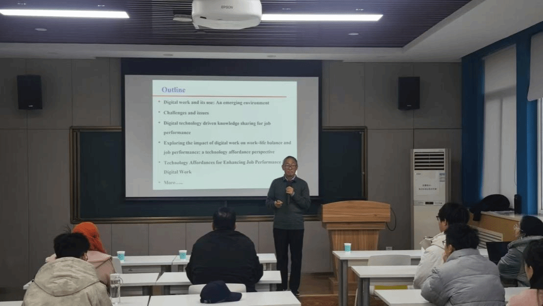 在此次报告中,邓和浦教授深入阐述了数字化办公与工作绩效之间的紧密联系,详细介绍了数字技术如何推动知识共享并提升工作绩效,以及数字化办公对工作与生活平衡的深远影响。通过分享两篇最新发表的论文成果,邓和浦教授强调了数字化办公的重要性,指出数字化办公的推进不仅能够提升工作效率和质量,还能够帮助员工实现工作与个人生活的更好平衡。