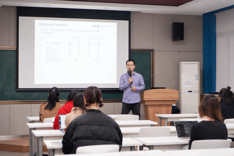 报告中,张艳磊介绍了当前全球数据泄露的法律背景及其对企业运营的深远影响,特别是关于数据泄露披露法的实施现状。他结合多个国家的法律法规变化,探讨了美国数据泄露披露法在企业财务管理与税务筹划中的重要作用,并分析了该法可能对企业税务安排带来的潜在挑战和机遇。张艳磊通过严谨的理论分析与实证检验,帮助在场的师生更清晰地理解了数据泄露法的应用及其与企业税务筹划的密切关系,大家深入探讨了在现代信息技术飞速发展的背景下,企业如何应对合规要求,优化财务决策这一问题。