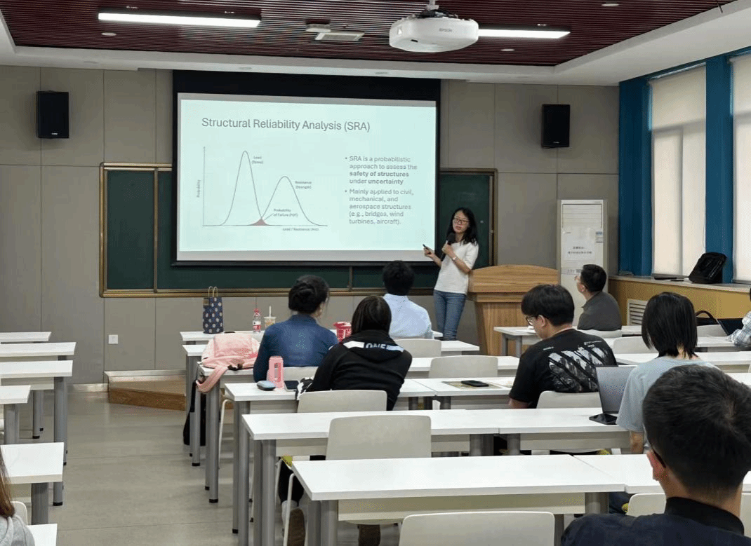 张密密围绕结构可靠性的并行化分析问题展开介绍,研究针对评估结构在不确定条件下安全性的概率方法,主要应用于土木、机械和航空航天结构等领域。张密密详细分享了贝叶斯学习框架,以及基于惩罚学习函数的并行自适应可靠性分析,以及她在函数型数据方面的最新研究。