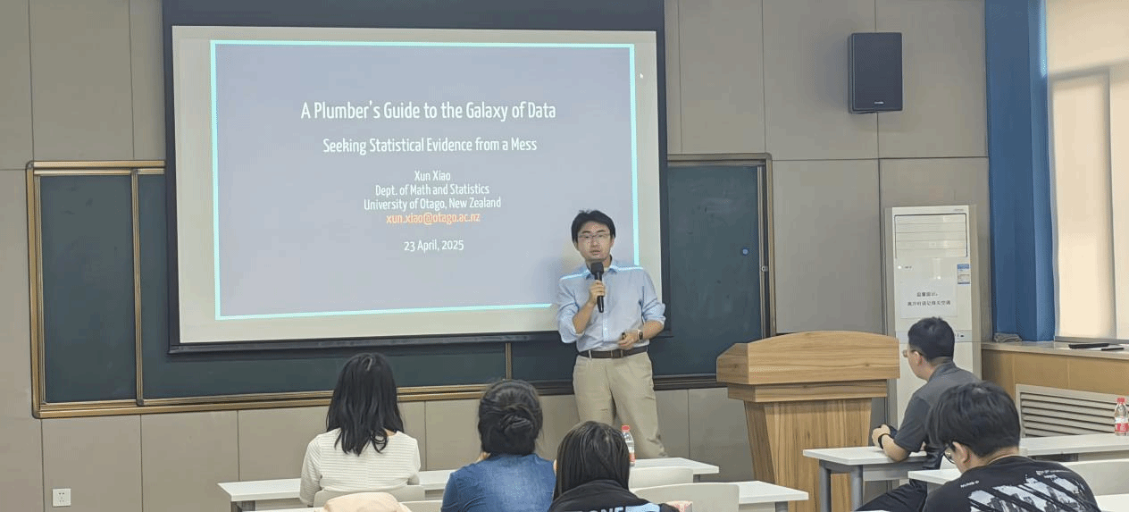 2025年4月23日,应williamhill英国威廉希尔的邀请,新西兰奥塔哥大学数学与统计学系讲师肖逊博士、爱尔兰都柏林圣三一大学计算机科学与统计公司助理教授张密密博士在214报告厅分别作了题为“数据宇宙工作指南:从混乱中寻找统计证据”和“基于惩罚学习函数的并行自适应可靠性分析”的学术报告。本次报告会为williamhill英国威廉希尔2025海外系列讲座第5期,由李乘龙副教授主持,部分青年教师和研究生参加了此次报告会。
