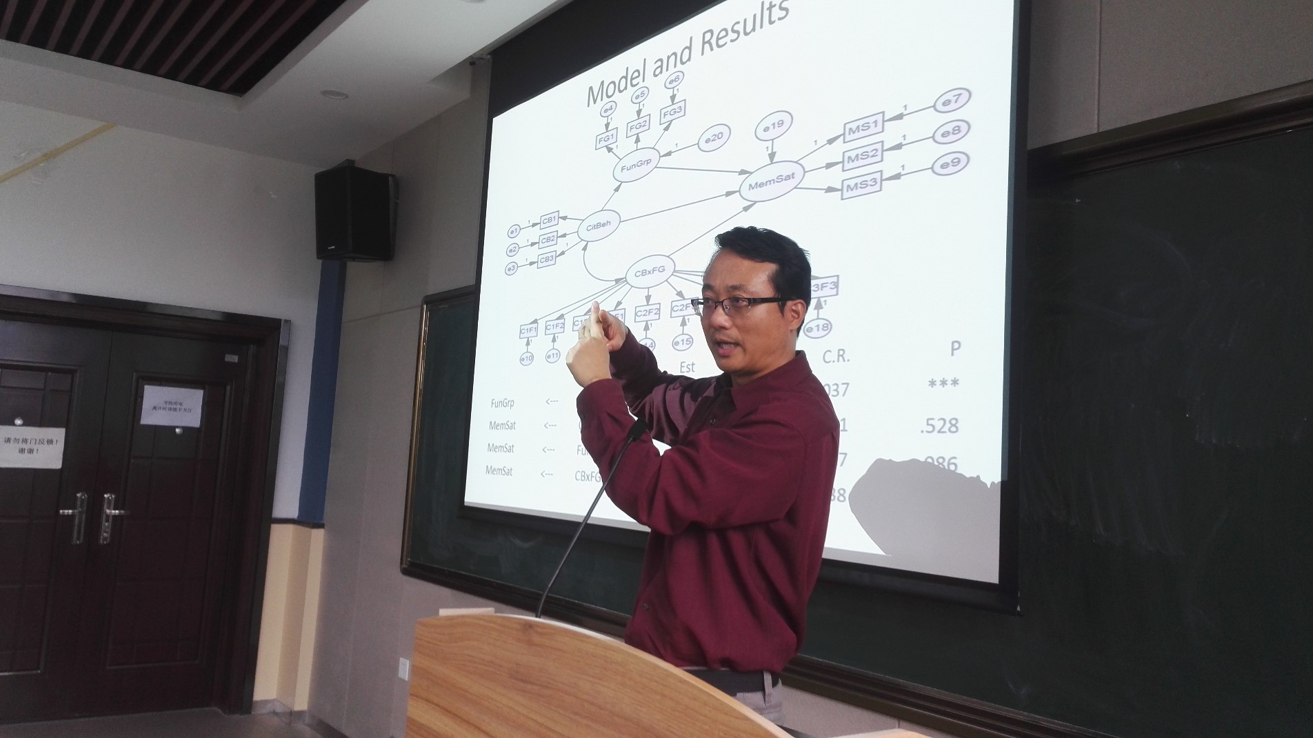 2019年5月8日下午,美国德克萨斯大学大河谷分校商公司孙钧(Sun Jun)教授来访,并在214学术报告厅做了题为“Mediation and Moderation in Structural Equation Modeling”的学术报告。报告会由张亚莉副教授主持,williamhill英国威廉希尔教师和研究生三十余人参加了此次报告会。