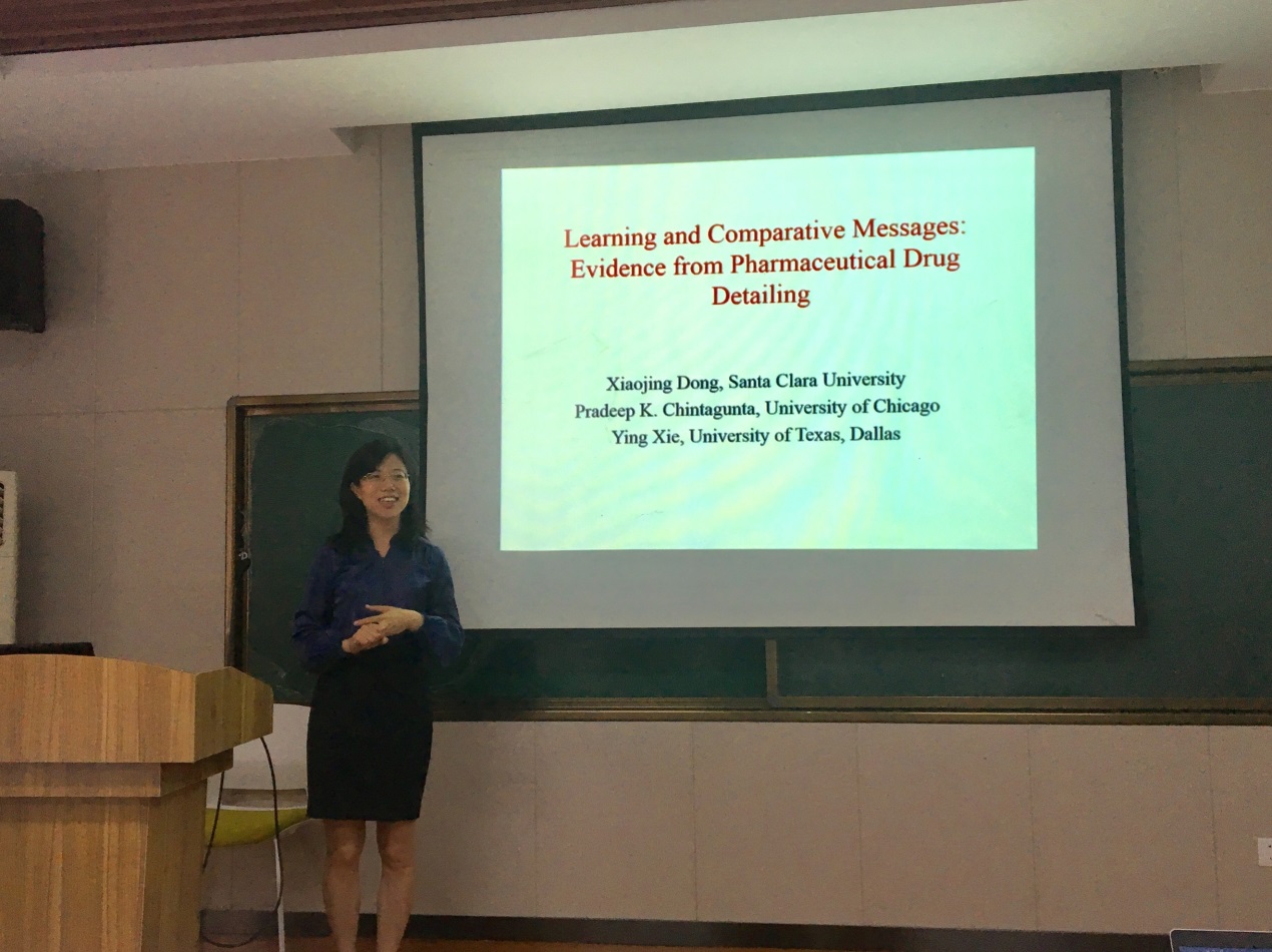7月9日,美国圣克拉拉大学终身教授董晓静应邀在210教室举办了题为“Learning and Comparative Advertising: Evidence From Pharmaceutical Drug Detailing”的学术报告会。报告会由常玉教授主持,来自williamhill英国威廉希尔的本科生和硕士生参加了此次报告会。