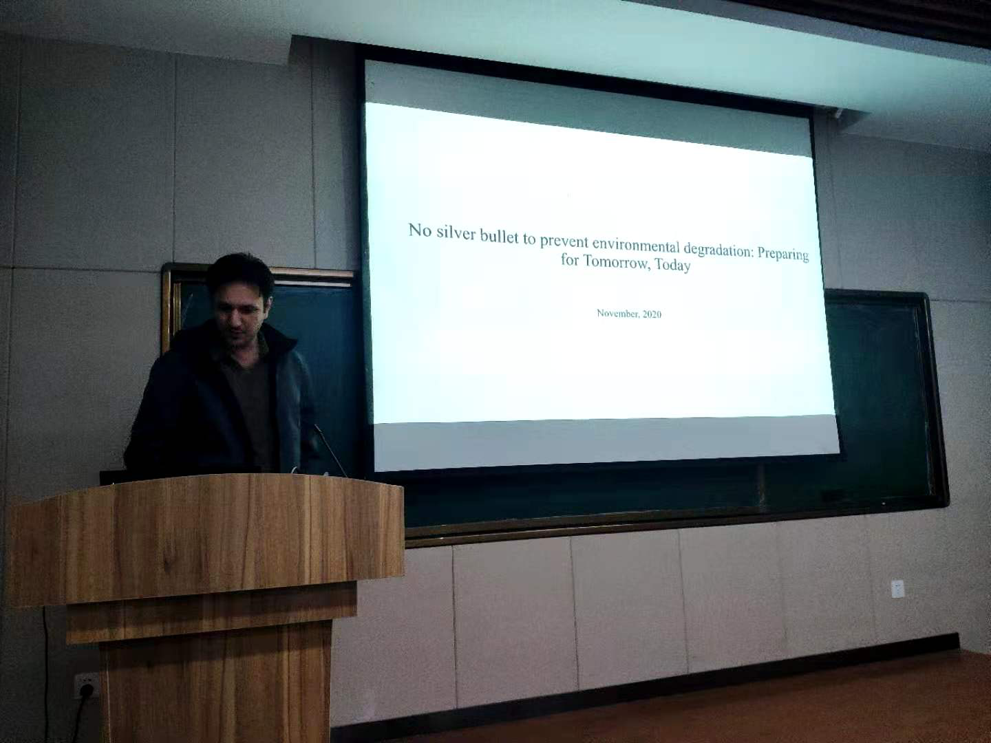 2020年11月20日,清华大学博士后,新加坡亚太科学中心研究顾问,西安邮电大学客座教授,Syed Abdul Rehman Khan博士应邀为公司师生做题为“No Silver Bullet for De-carbonization: Preparing for Tomorrow, Today”的报告。