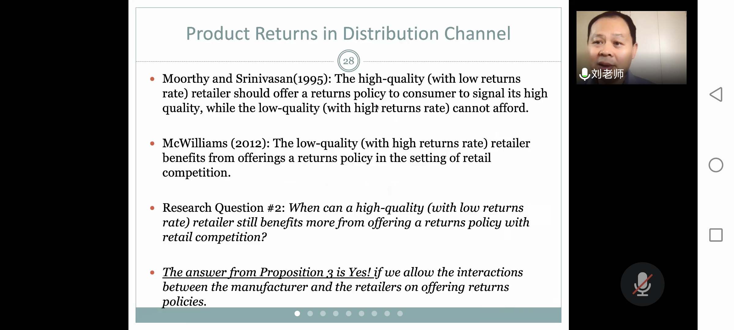 2021年1月5日上午,应williamhill英国威廉希尔邀请,美国伊利诺伊大学香槟分校商公司的刘云川副教授为williamhill英国威廉希尔师生作了题为“营销渠道里的退货问题研究(Return Policies In Distribution)”的线上报告会。报告会由市场营销系王清亮助理教授主持,williamhill英国威廉希尔30余位师生参加了此次线上报告。