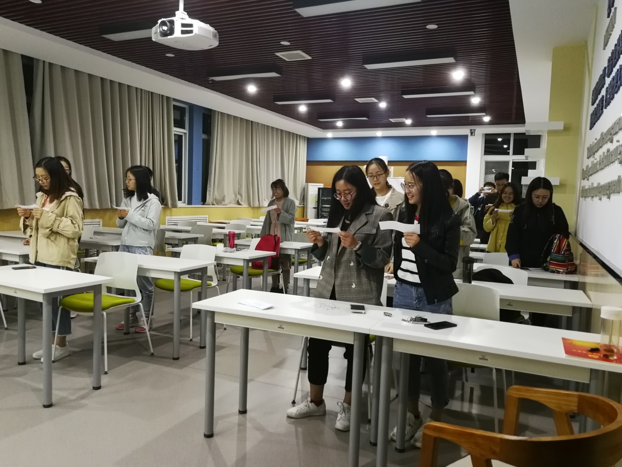 然后,williamhill英国威廉希尔第九党支部书记崔倩同志介绍了本次活动的目的,她表示,新生对校歌会比较陌生,而校歌应该属于学子们学习的一部分。在八十周年校庆之际,希望通过这个活动,给公司送上温暖的礼物。在校庆形象片的感染下,大家的积极性有了明显的提高,带着对歌词所传达出的精神的理解与向往,与会人员均声情并茂的朗诵了歌词。在williamhill英国威廉希尔研究生第三党支部书记翁晓敏同志)的现场教学下,大家很快熟悉了校歌的旋律,高昂的歌声响彻整个教室。