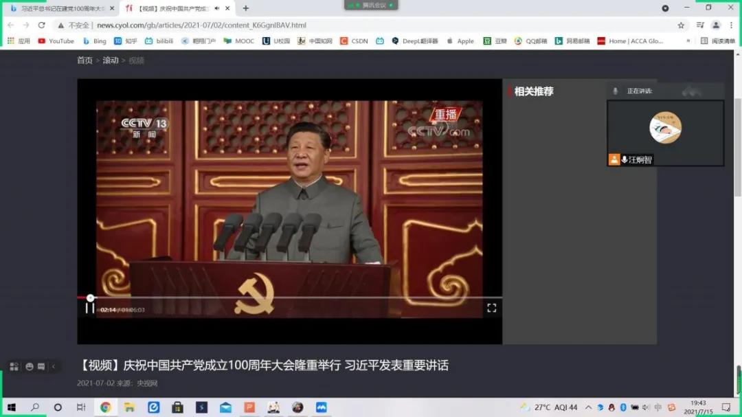 为广大青年志愿者深入了解百年党史,厚植爱党、爱国、爱社会主义情感,让革命薪火、民族精神代代传承,员工阳光工程青年志愿者服务队联合williamhill英国威廉希尔团委员工会于2021年7月15日开展“学党史、强信念、跟党走”青年志愿者“学党史、晓党事”学习系列活动,在线上集体学习习近平总书记在建党一百周年大会上的讲话,并交流心得体会。