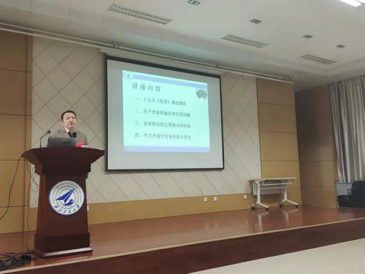 郝老师首先沿着中国共产党成立后党章修改的时间线,梳理了历次党章修改的情况,主要介绍了十九大党章修改内容;其次,郝老师讲解了党章的主要内容,分享了自己的研究观点,给同学们带来了更多的思考和启发;介绍了党章的地位、作用以及学习和遵守党章的基本要求。郝老师的讲座既深入浅出,又发人深思,让同学们全面系统的了解了《党章》的形成背景和主要内容,更记住了《党章》是党的根本大法,通过《党章》的学习更加深刻理解了党的性质、宗旨、最高理想、奋斗目标,为同学们早日成为合格党员打下了坚实的思想基础。