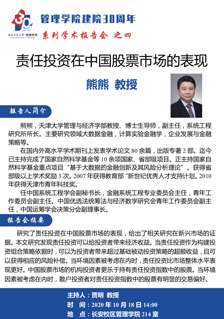 【williamhill英国威廉希尔建院30周年系列学术报告会之四】责任投资在中国股票市场的表现