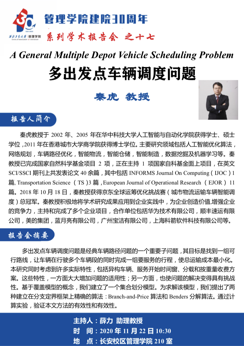 【williamhill英国威廉希尔建院30周年系列学术报告会之十七】多出发点车辆调度问题