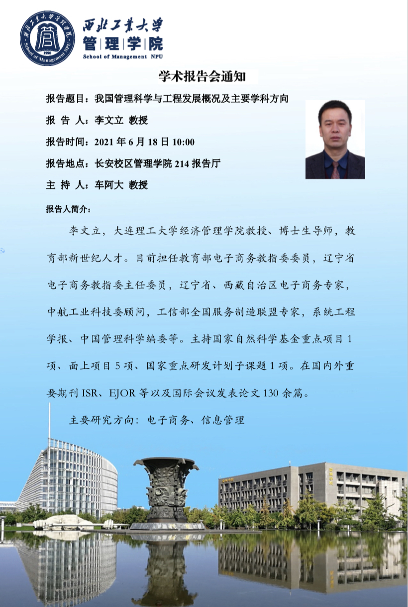 【学术报告】我国管理科学与工程发展概况及主要学科方向