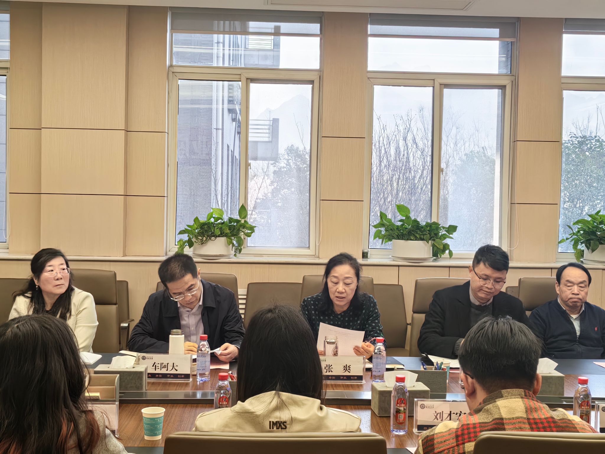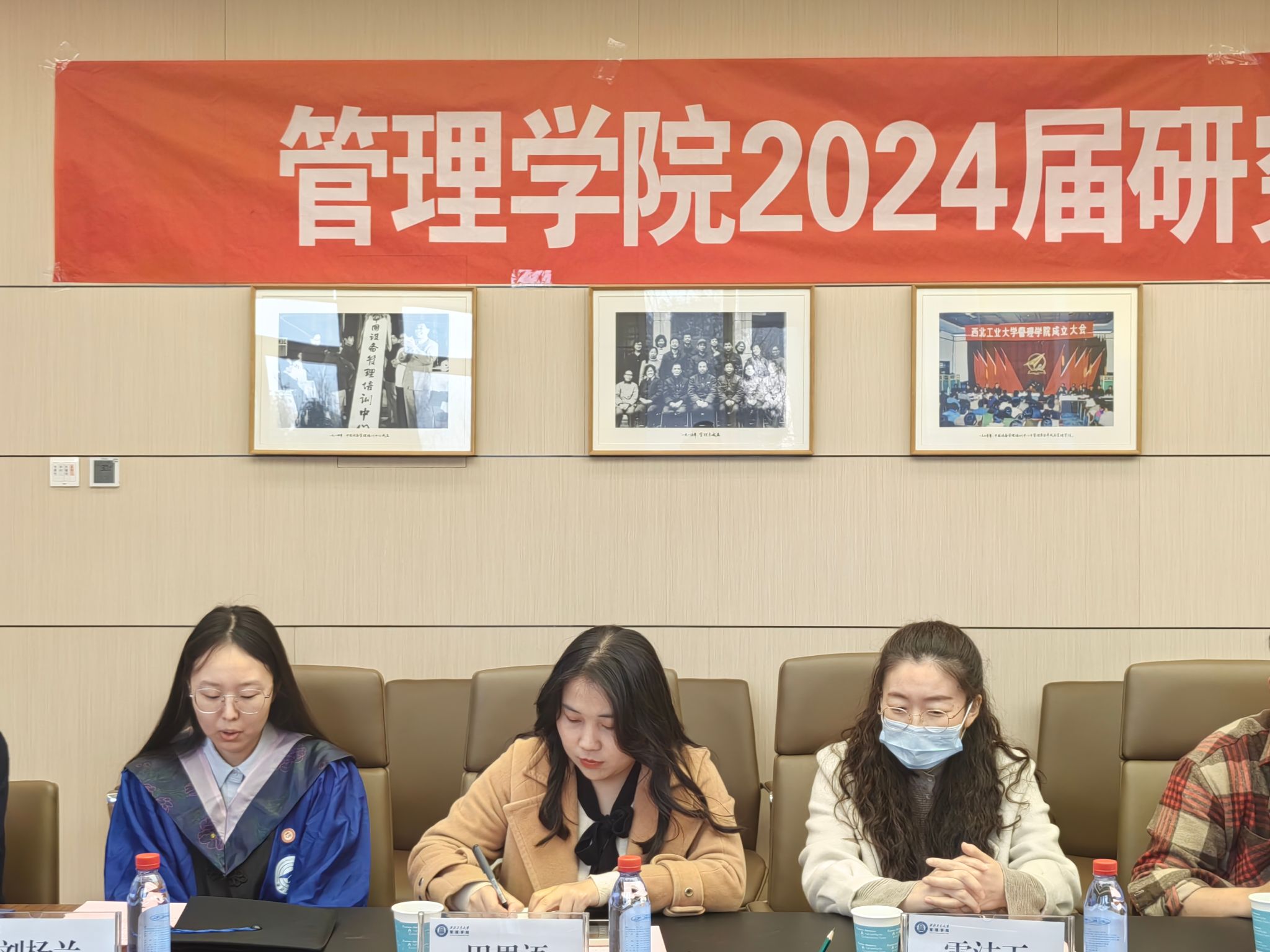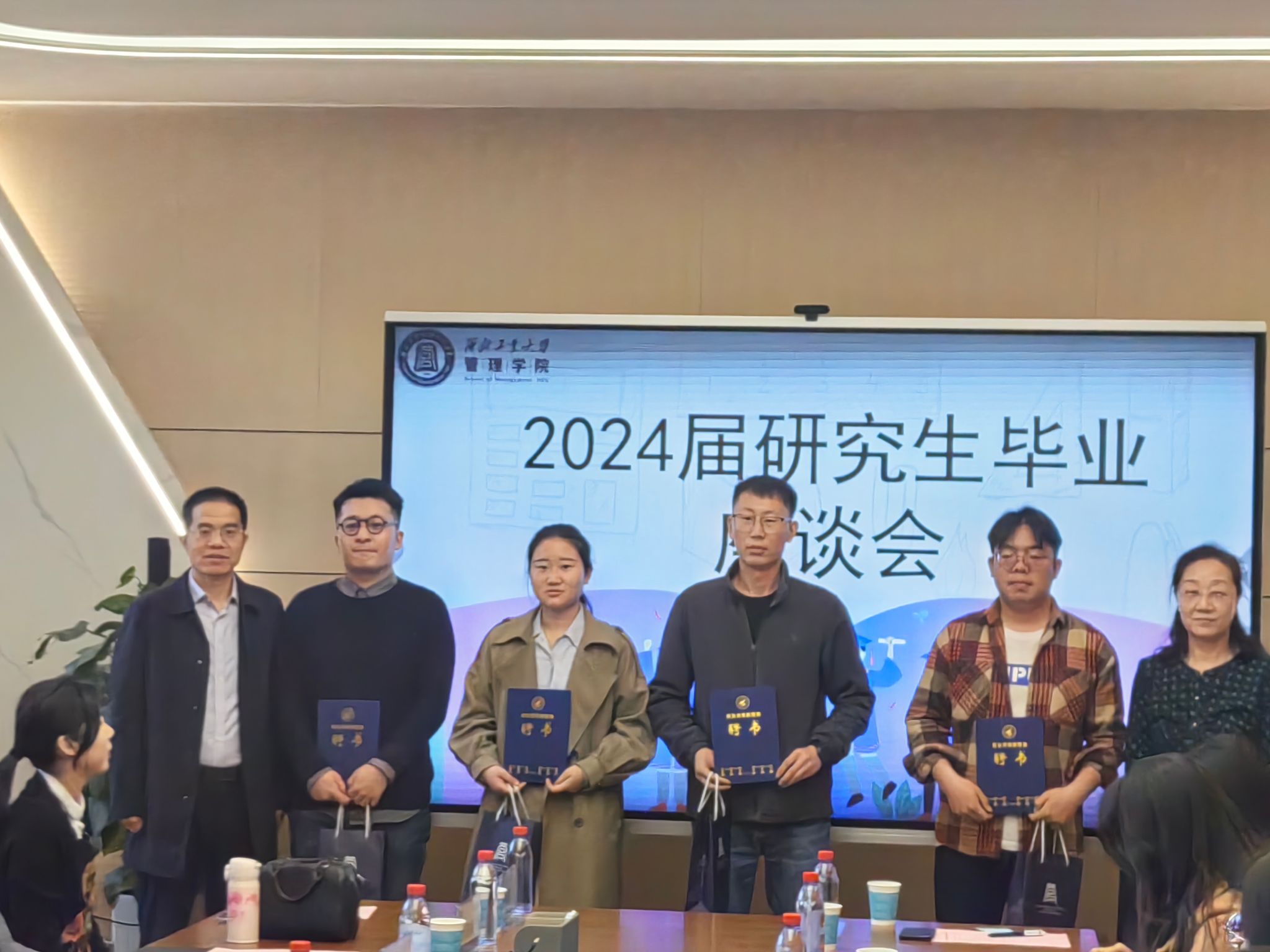 会上,张爽宣读了《关于聘任2024届硕士毕业生员工联络员的决定》。张爽、车阿大共同为4名员工联络员颁发聘书及毕业纪念品。
