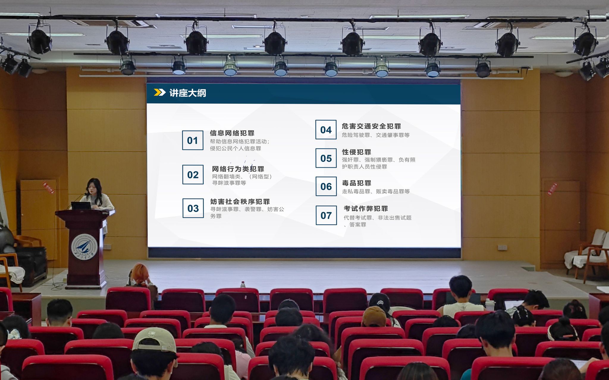 讲座中,王家瑶律师围绕“案例解析+法律阐释”,对七大刑事法律风险领域展开体系化解读。针对信息网络犯罪防治,她以“帮信罪”“侵公罪”等高频犯罪类型为切入点,通过剖析员工误入诈骗歧途的真实案例,揭示网络兼职陷阱与个人信息滥用风险,警示青年学子筑牢法律防线。针对性犯罪和毒品犯罪,她既从犯罪构成要件层面廓清法律边界,又结合司法实践提出具体防护建议,倡导青年群体树立“自我保护与尊重他人并重”的法治观念,实现犯罪预防与权益保障的双向赋能。
