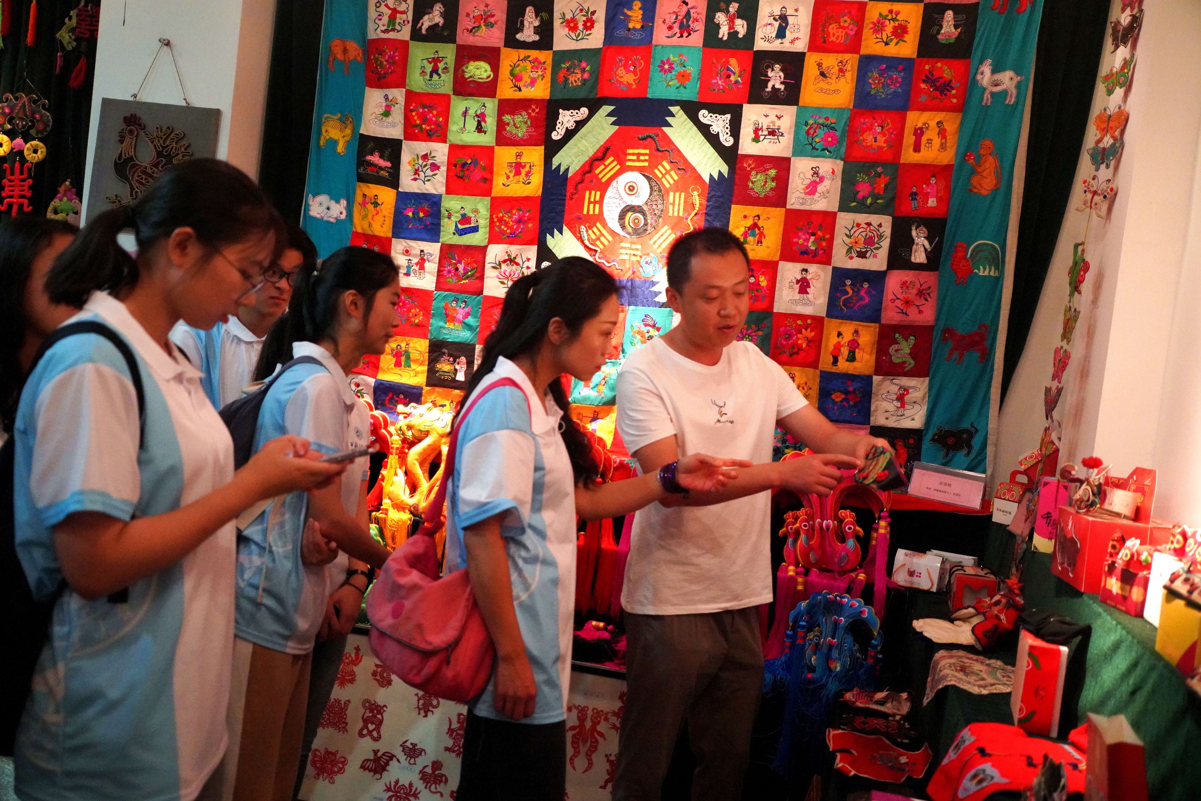 8日上午,队员们前往千阳县文化馆,探究千阳刺绣在新时代新机遇下的文化保护进程。在参观过程中,实践队员们注意到,文化馆里的展品不仅有传统的手工艺品,还有出自各大高校艺术生的设计品,如刺绣产品的包装礼盒。但由于投资不足,很多创意作品仅限于展览,尚未投入使用。文化馆负责人提到,已经申报为国家级非遗项目的西秦刺绣是将风格差别不大的几个县区的刺绣作为整体申报的,不过目前来看,千阳刺绣在其中发展较好,市场前景较佳。同时,队员们了解到,国家会对文化馆有资金扶持,以举办书画展览、文艺活动教学等活动。