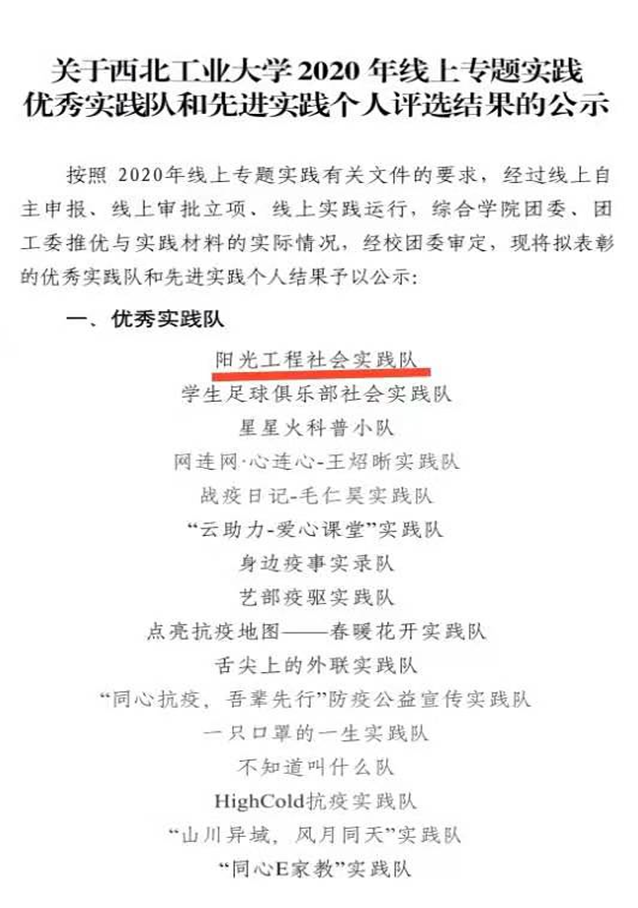 今年疫情期间,为减少疫情的扩散,全国人民都开启了居家模式。与此同时,迫于升学压力,高三莘莘学子还在为2020年的高考奋战。由“阳光工程“青年志愿者服务队组织开展的线上支教活动正式开始,先后帮助了近千名高三学子。在2020年公司线上专题实践中荣获“优秀实践队”称号。