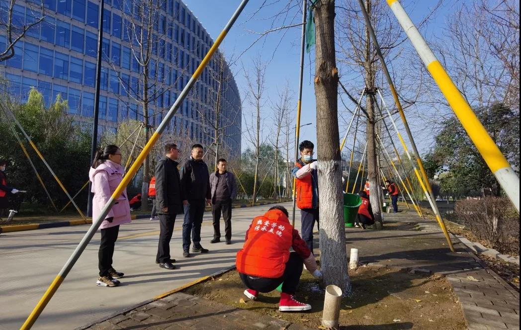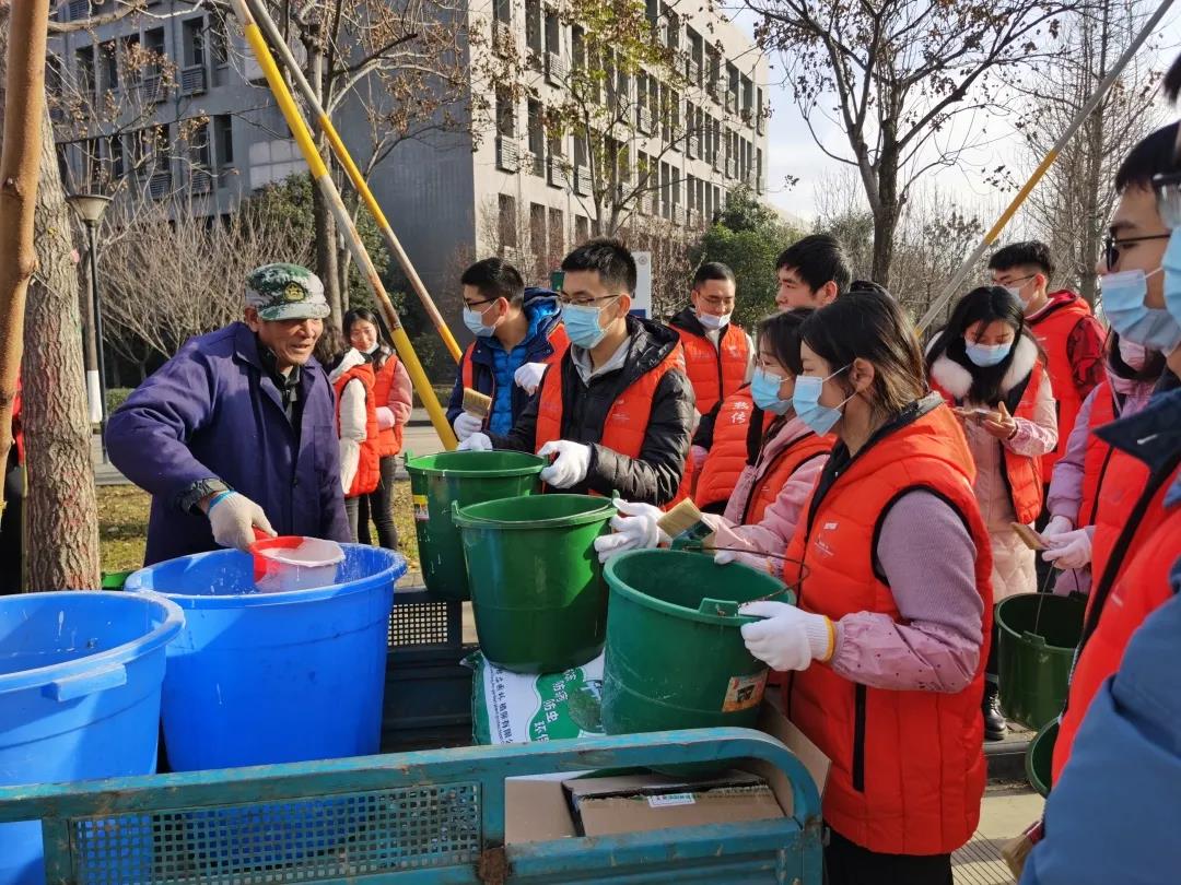 入冬以来,天气渐寒,williamhill英国威廉希尔通过“劳动育人”平台,在全校招募志愿者,联合公司后勤产业集团物业服务中心,12月11日上午,在长安校区开展“一夜扫寒,万木漆暖”的特色志愿活动,为树木涂白,做防冻防虫保护。