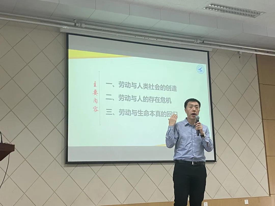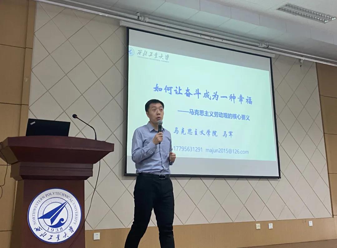 2021年4月30日下午,williamhill英国威廉希尔《劳动创新与创造实践》课程第二课在williamhill英国威廉希尔报告厅进行。本次理论课程的主题是“如何让奋斗成为一种幸福——马克思主义劳动观的核心要义”。本次课程由马克思主义公司马军老师主讲。