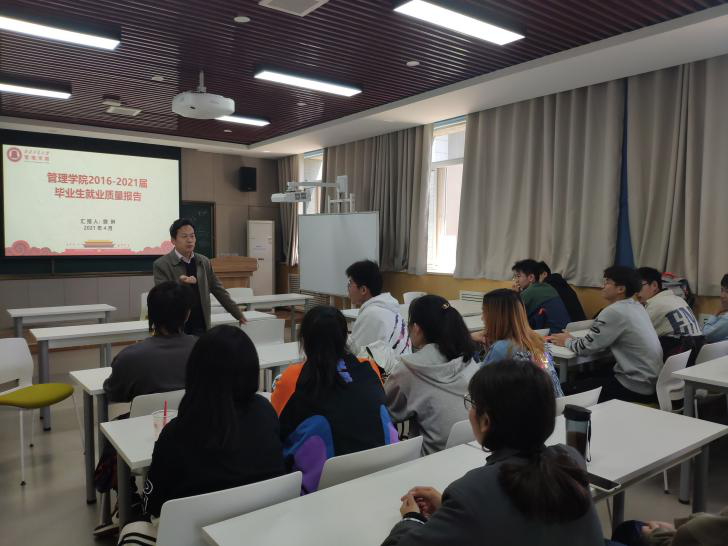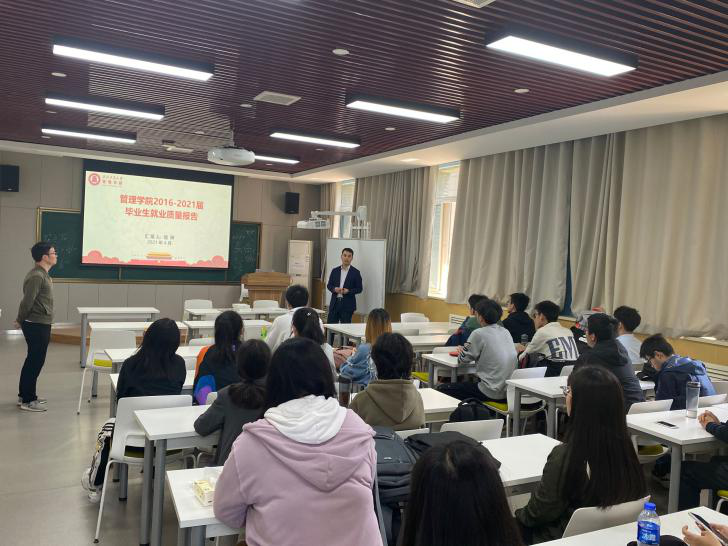 首先樊琳老师为同学们介绍了近几年来williamhill英国威廉希尔的升学、就业等情况,增强了同学们对未来求学和就业的信心,同时介绍了公司各种为同学们提供指导与帮助的政策,并对未来升学或者就业的形势做了分析。