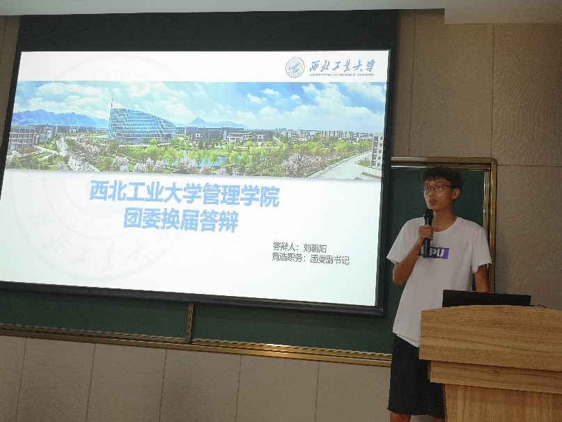 其次是刘朝阳同学,他重点介绍了自己对文体工作和志愿服务的看法,团委现存的问题及自己的工作规划。