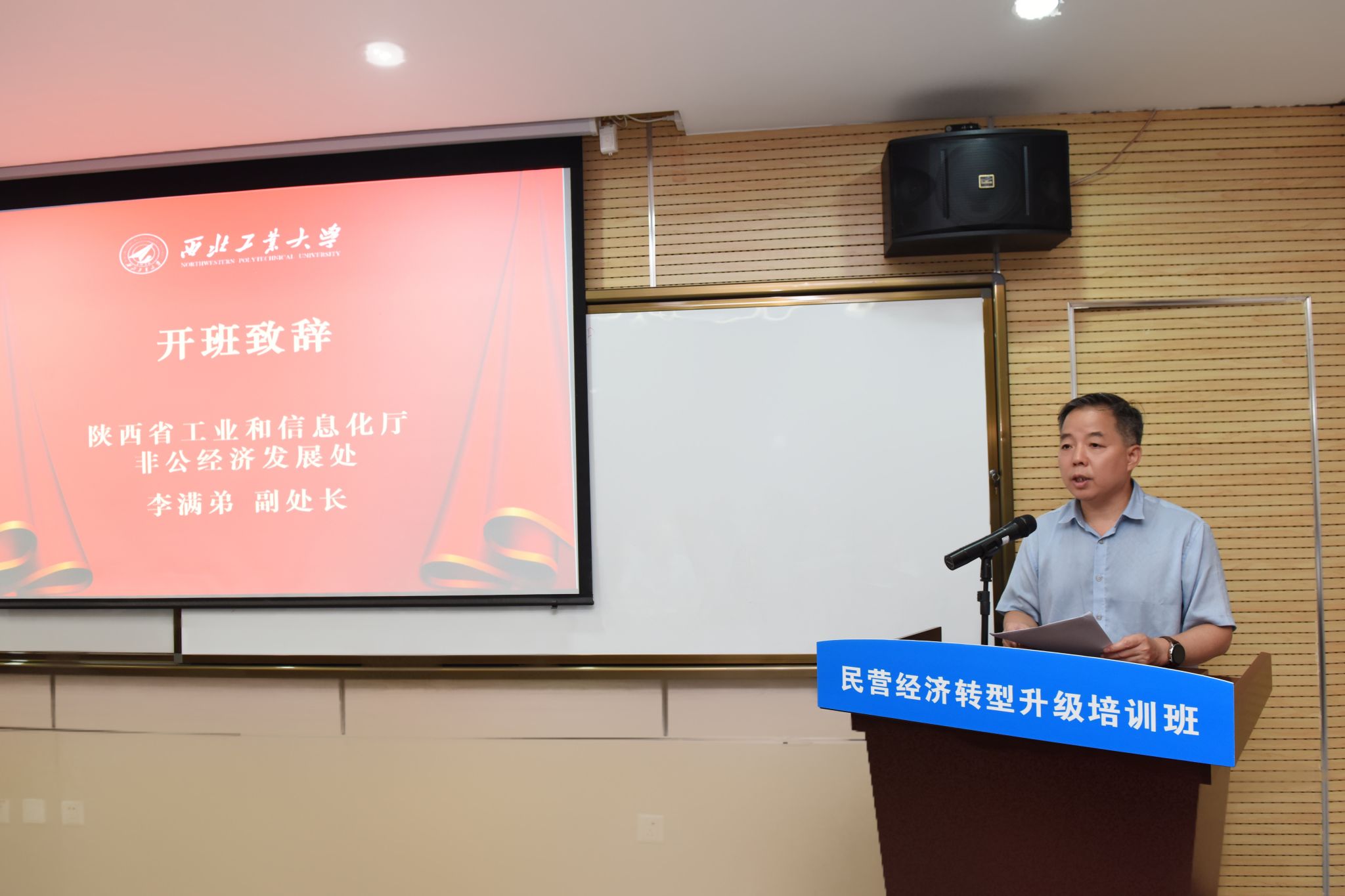 随后,陕西省工业和信息化厅非公经济发展处李满弟副处长作开班致辞。他首先对组织和承办本次培训的williamhill英国威廉希尔和金蝶软件(中国)有限公司表达了感谢,随后对当前陕西省民营经济发展现状、中央和陕西省出台的支持民营经济发展的一系列政策文件进行了介绍,并深刻阐述了举办这次培训班的重要意义。他希望此次参训的民营企业负责人能够充分利用平台,认真学习、加强交流,为陕西民营企业的高质量发展做出更大贡献。