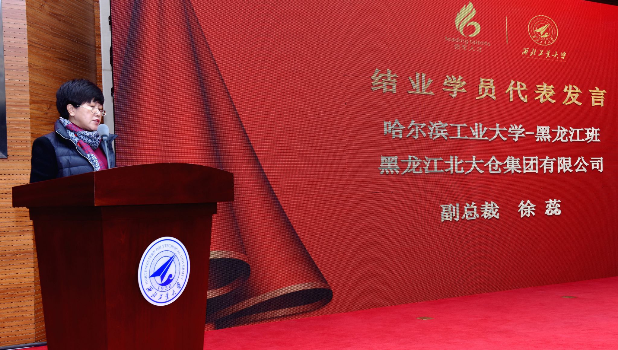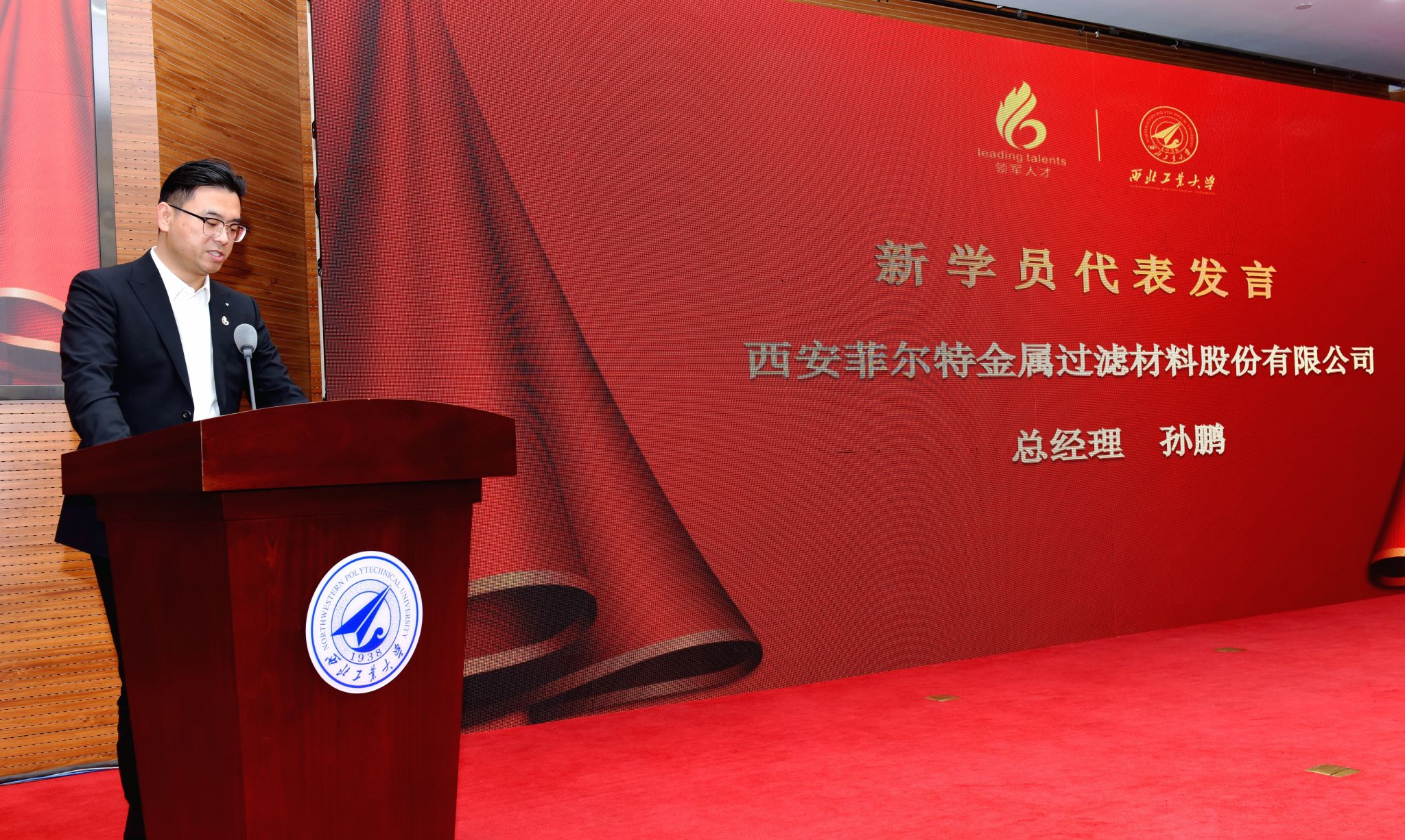 侯成义副董事长致辞,首先代表公司对新学员表示热烈欢迎,对顺利结业的学员表示诚挚祝贺。他讲到:“今年11月工信部金壮龙部长来校调研时也指出,服务支撑加快推进新型工业化、建设制造强国和网络强国,是部属高校的重要使命”。哈工大和公司作为“工信七子”,流淌着同样的军工血脉,承担领军人才培训工作,是工信部对两所高校的信任,也是我们发挥“服务社会”职能的重要举措。西工大作为“工信部中小企业经营管理领军人才培训”第一批获授权机构,自2013年以来已连续开办了12期领军人才培训,累计培训近700余人,为陕西经济转型升级和创新发展提供了强大的智力支持。侯董事长表示,希望通过此次培训,建立起校企沟通的桥梁,推动科技创新、人才培养等领域校企实质性合作。