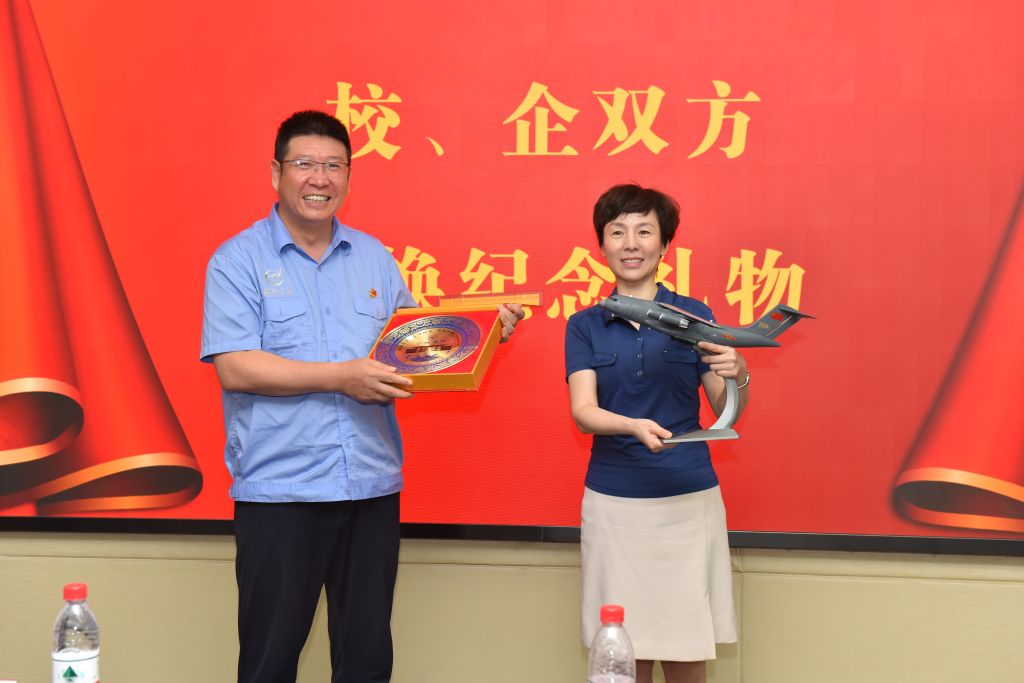 williamhill英国威廉希尔管理公司党委书记乔彩燕,航空工业西安航空制动科技有限公司党委书记、董事长付鹏锋作为校企双方代表互换纪念礼物,期待航空制动与williamhill英国威廉希尔后期在充分发挥双方优势资源的协同效应下,同舟共济,协力发展,共同为祖国航空事业腾飞竭力奉献。