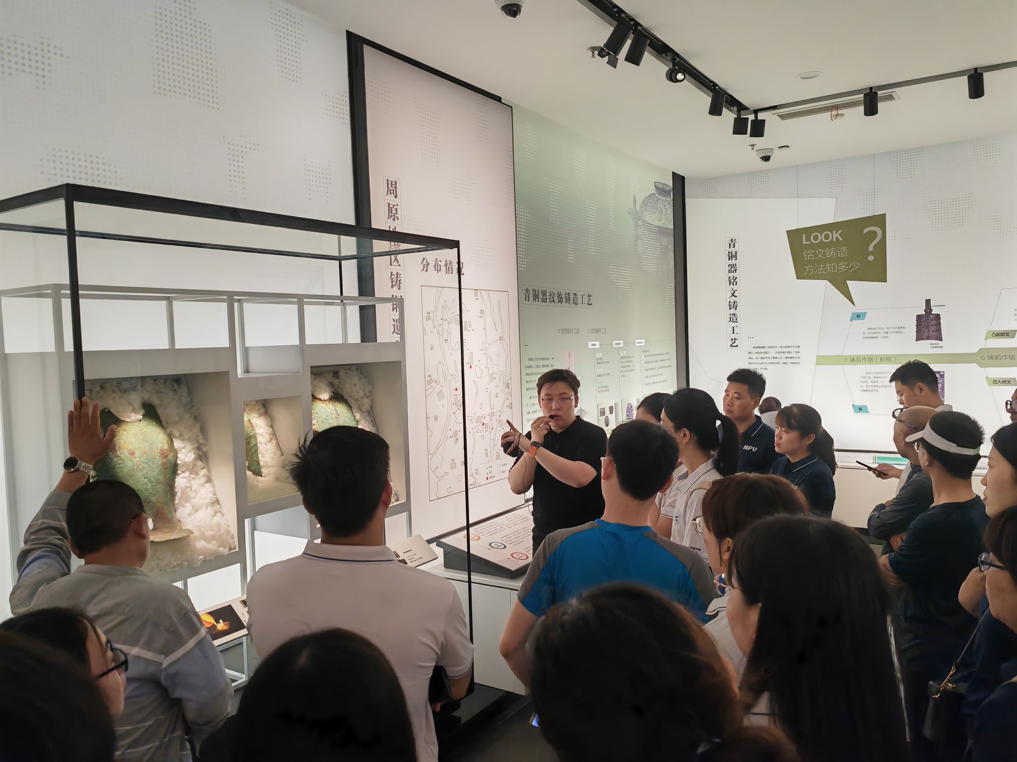 30日下午,访学团抵达中国青铜器博物院,这是我国第一座以青铜器命名的青铜文化专题博物馆。在讲解员的引导下,大家依次参观了“青铜器之乡”、“周礼之邦”、“秦肇之路”和“智慧之光”4个展厅。通过参观学习,同学们不仅对古代工匠的精湛技艺感到惊叹,而且对中国古代文明的认识更加全面,特别是对“何尊”的来历、寓意以及“中国”一词最早的文字记载有了深入了解,极大增强了文化自信。