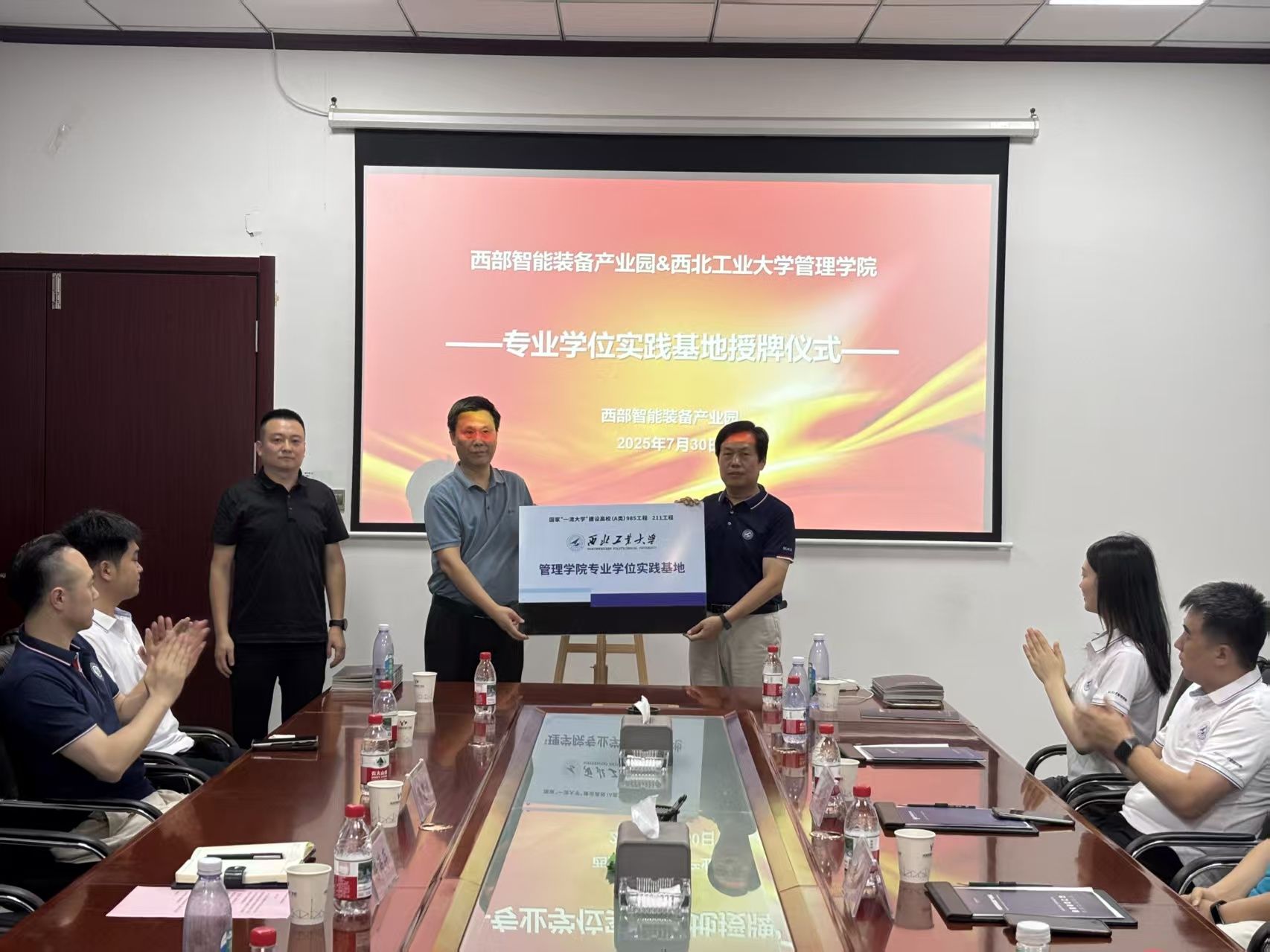 30日上午,访学团走进西部智能装备产业园。访学团首先参观了部分企业的生产线,了解企业数字化生产的流程与管理。参观结束后,金帆主任与西部智能装备产业园发展公司副总经理杨建洲共同为williamhill英国威廉希尔专业学位实践基地揭牌。在座谈交流环节,管委会发展中心副主任陈满存详细介绍了产业园的经营发展情况,将目前所面临问题和未来规划向全体师生进行了阐述。