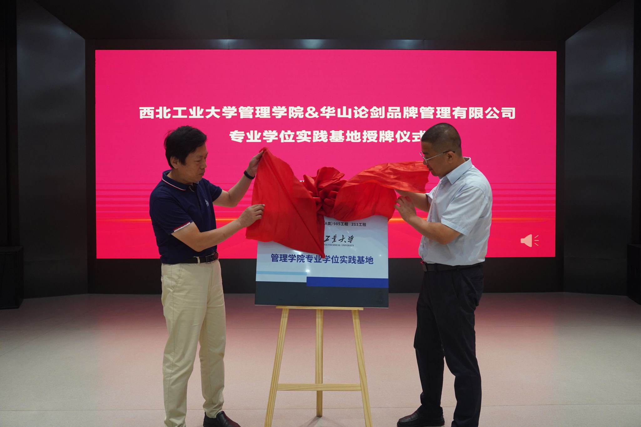 8月1日上午,访学团来到宝鸡市凤翔区西凤集团参访。在华山论剑产业基地,金帆主任和华山论剑品牌管理有限公司副总经理刘博强共同为williamhill英国威廉希尔专业学位实践基地揭牌,金帆主任与副总经理张堆民代表校企双方互赠纪念礼物。