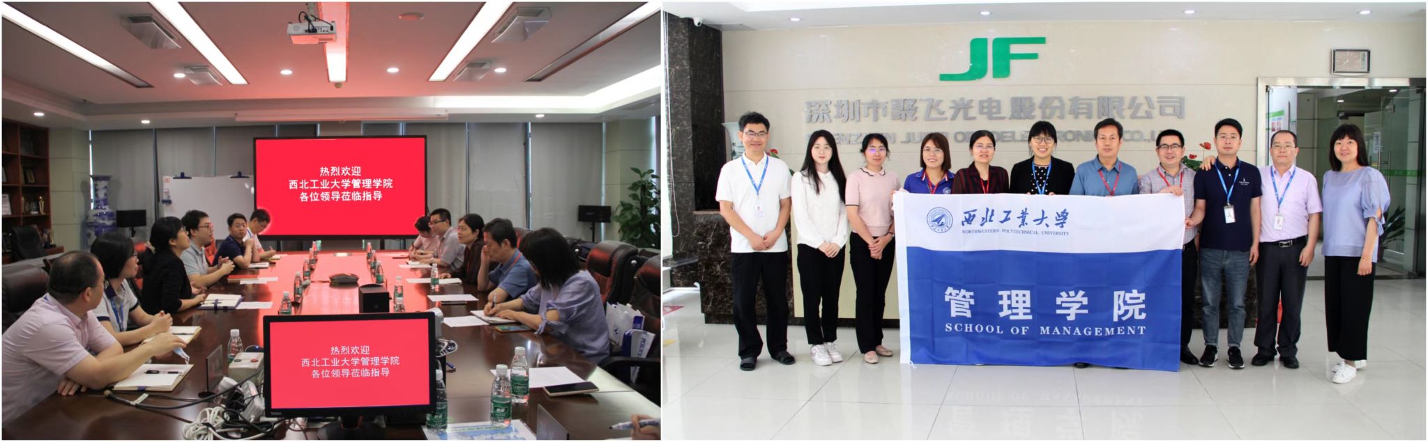 17日上午,专业学位一行前往深圳市聚飞光电股份有限公司调研。参观了实验室、工厂车间后,一行与聚飞光电董事长兼总经理邢美正、人力资源中心总监黄明、生产中心副总监王强、仓储部主管陈红梅、车用车间主管李欢、SMT设备主管黄路华就校企合作、实践基地等进行了交流,并对未来更多样的产教融合形式进行了深入的探讨。