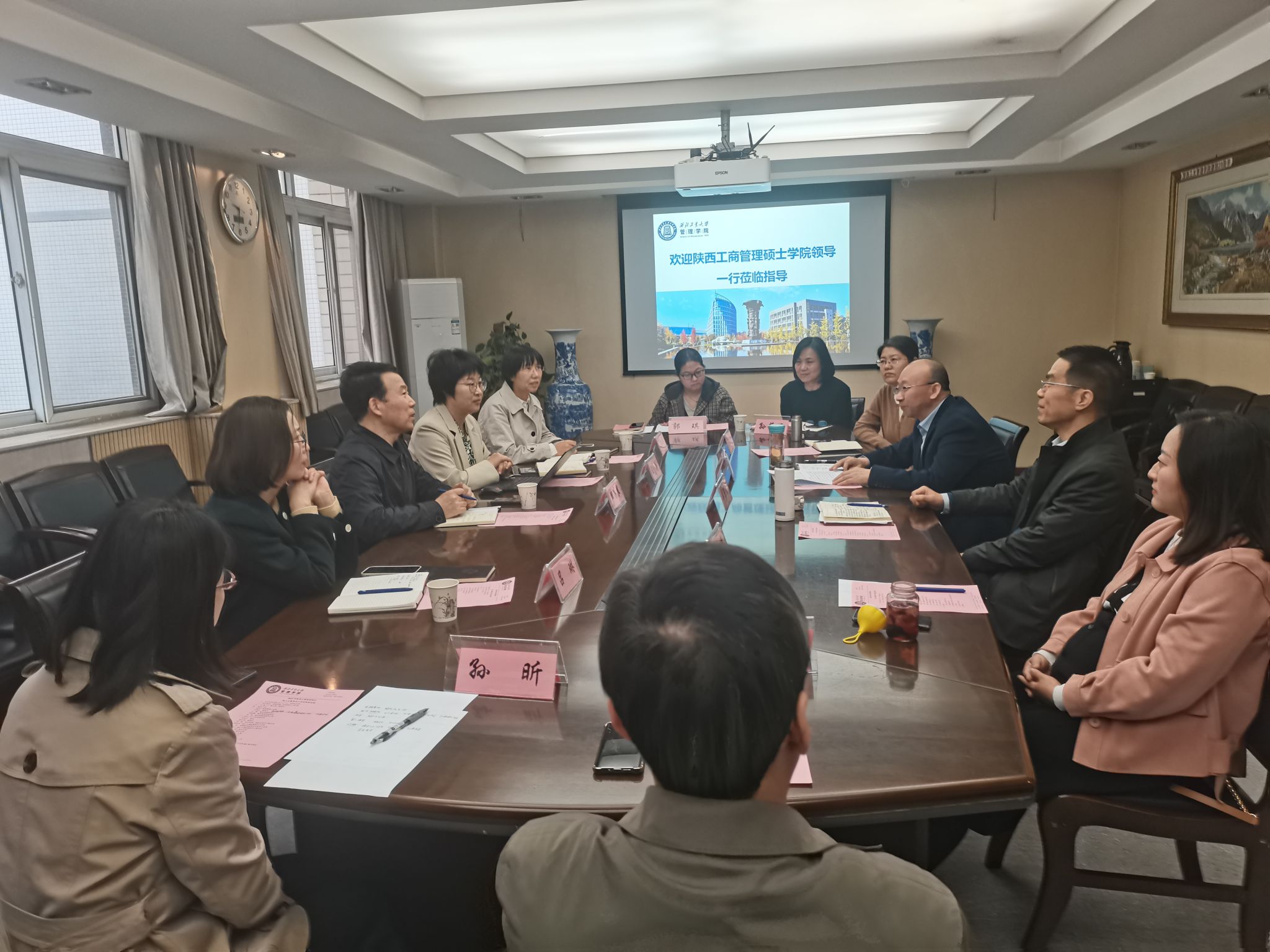 3月7日上午,陕西工商管理硕士公司副经理田高良教授、教学管理部部长王静、副部长吴丽娜、教学主管吕琳一行4人来公司就陕西MBA项目进行调研交流。williamhill英国威廉希尔经理车阿大、副经理郭云涛、经理助理兼国际认证办公室主任邵婧、MBA教育中心主任杨宏玲、副主任孙若妮、管理案例研究与开发中心主任金帆及MBA教育中心相关工作人员参加了座谈。座谈会由郭云涛副经理主持。