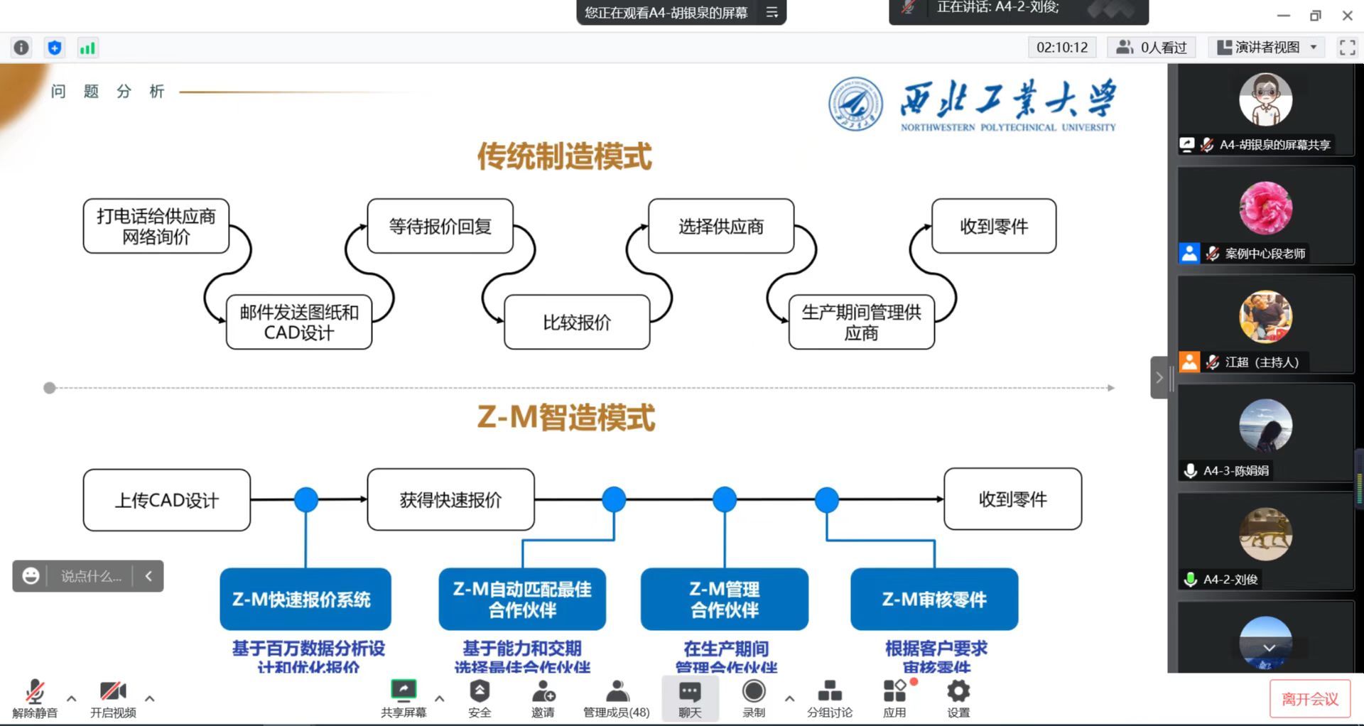 为落实《中国教育现代化 2035》的宏伟规划,提升公司工程管理硕士(MEM)培养质量,11月19日,第一届williamhill英国威廉希尔MEM案例大赛以线上方式顺利举行。本次大赛共有来自MEM专业学位的6支队伍参赛,公司管理案例研究与开发中心金帆主任参加了本次大赛。大赛特邀四川大学商公司梁学栋教授、天津大学管理与经济学部孟俊娜副教授和中航西飞民用飞机有限责任公司孙宝翔高级工程师担任评委,组长由梁学栋教授担任。