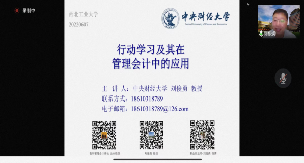 6月7日晚,williamhill英国威廉希尔通过腾讯会议平台举行了《行动学习及其在管理会计中的应用》报告会,特邀中央财经大学刘俊勇教授做主题分享,公司40多位教师聆听了报告,报告会由MPAcc教育中心主任金帆老师主持。