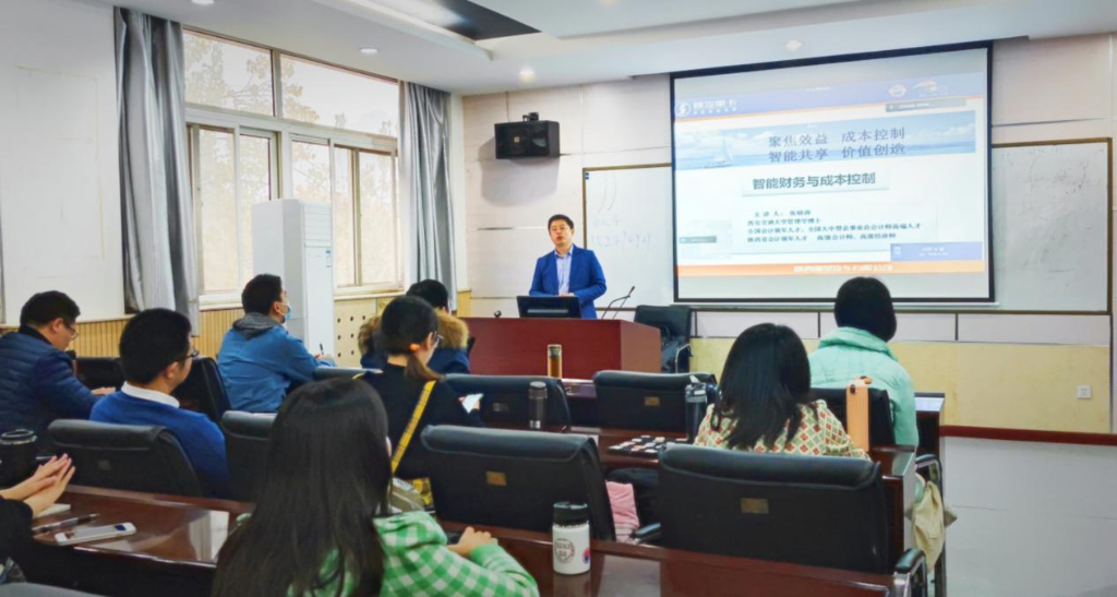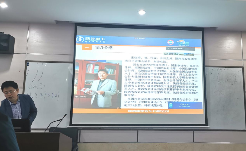 为了使同学们更深入地领悟会计学的思想,提升大家对理论的运用能力,20日上午,苏老师邀请公司企业导师、陕汽控股集团淮南公司董事会秘书、财务总监张晓涛先生走进课堂,分享了陕汽控股智能共享财务中心的建设与应用情况,并就集团成本控制、信息化建设等领域的布局与管理措施及所取得的成效与创造的价值做了详细介绍和展示。张总的分享和讲解,让同学们切实体会到了先进的财务管理理念和方法给企业经营管理带来的效能和改变,让同学们耳目一新,受益良多。