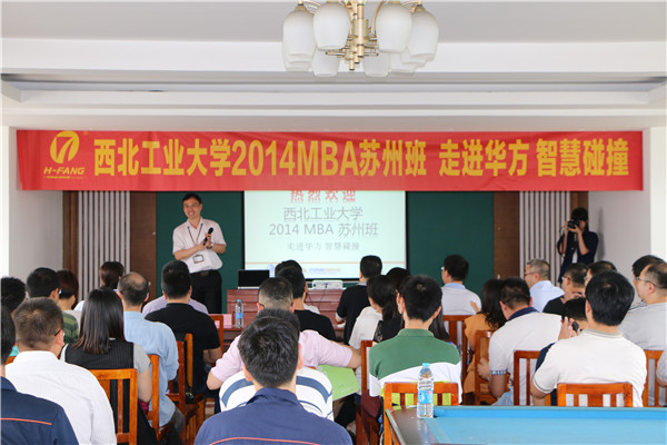 7月4日,在williamhill英国威廉希尔副经理郭鹏教授的带领下, 2014级MBA苏州班全体学员走进江阴华方科技,进行了《管理学》企业课堂学习。