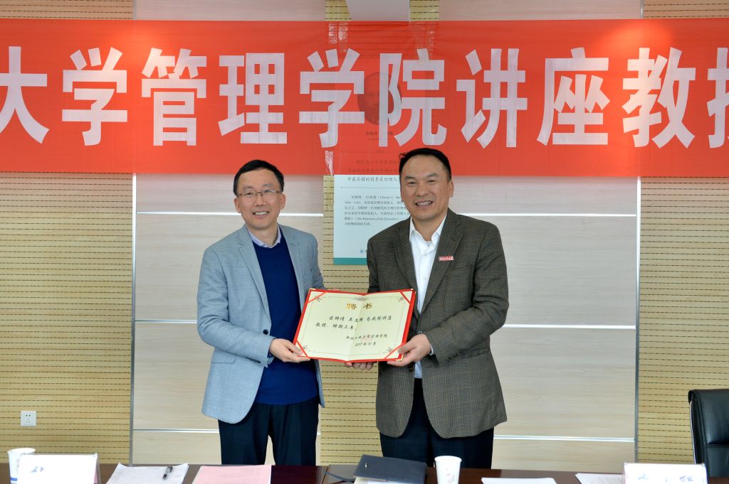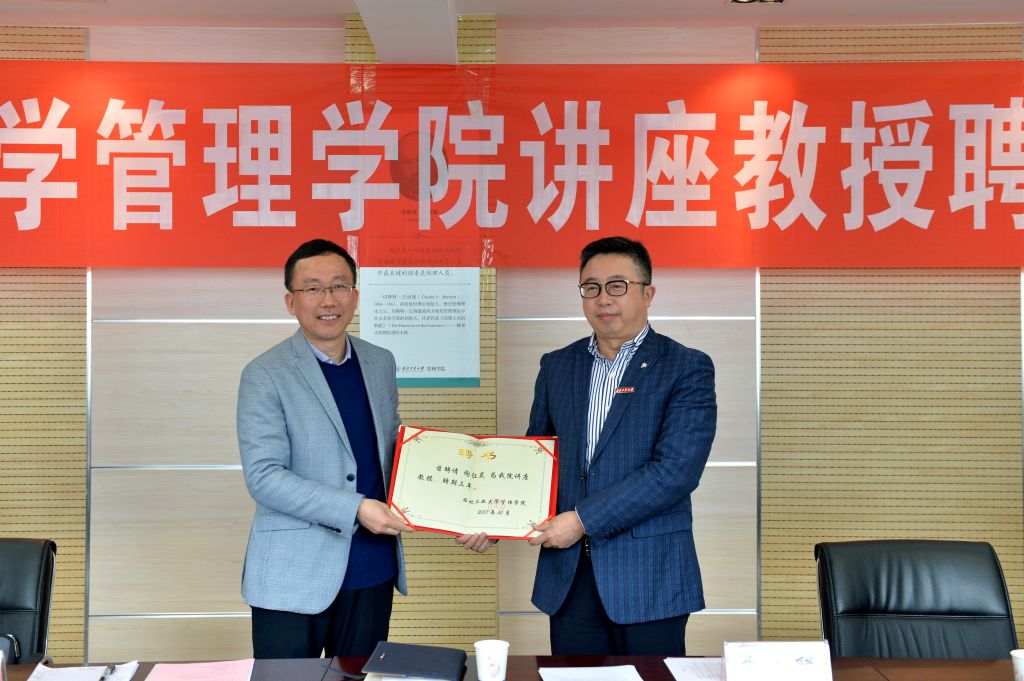 李小聪致欢迎词并介绍了到场的诸位来宾。他表示,根据williamhill英国威廉希尔学科特点,在人才培养、科学研究和社会服务中,需要构建多元化团队队伍,聘请既有管理理论又有长期管理实践的专家,参与公司的建设发展,尤其是诸如老员工创新创业、MBA、EMBA等专业学位教育,青年教师培养等方面,深感需要企业界专家的参与。形成校内教师与企业家讲座教授交流互动、发挥各自优势共同开展人才培养、科学研究及社会服务的团队队伍格局,并深化与企事业单位的交流合作,促进理论研究与管理实践相结合,是公司推进“双一流”建设发展的有效途径。williamhill英国威廉希尔从2017年初开始,在员工企业家及各行业知名管理专家中开展讲座教授遴选工作。本次聘任的企业家讲座教授经过了公司学术委员会和党政联席会的研究,得到了受聘企业家的支持。