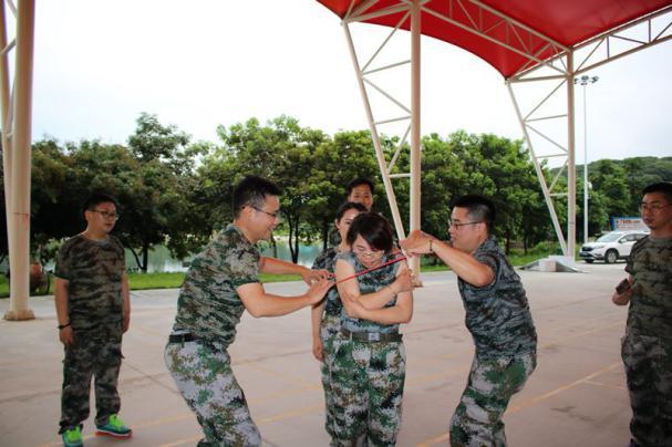 极限逃脱,考验和训练队员们坚定的信念和自我潜能激发的能力。在规定的时间里,大部分团队和同学们都顺利逃脱,只有一位娇小的女同学落在了最后,在一次次艰难地尝试中,她的胳膊和膝盖在和地面的反复摩擦中都出了血,但她毫不气馁,仍在坚持,最后终于在所有队员的欢呼声中成功地完成了任务。成功之时,大家脸上和身上虽然都挂满了汗水和伤痕,内心却充满了征服和挑战自我的欣慰。