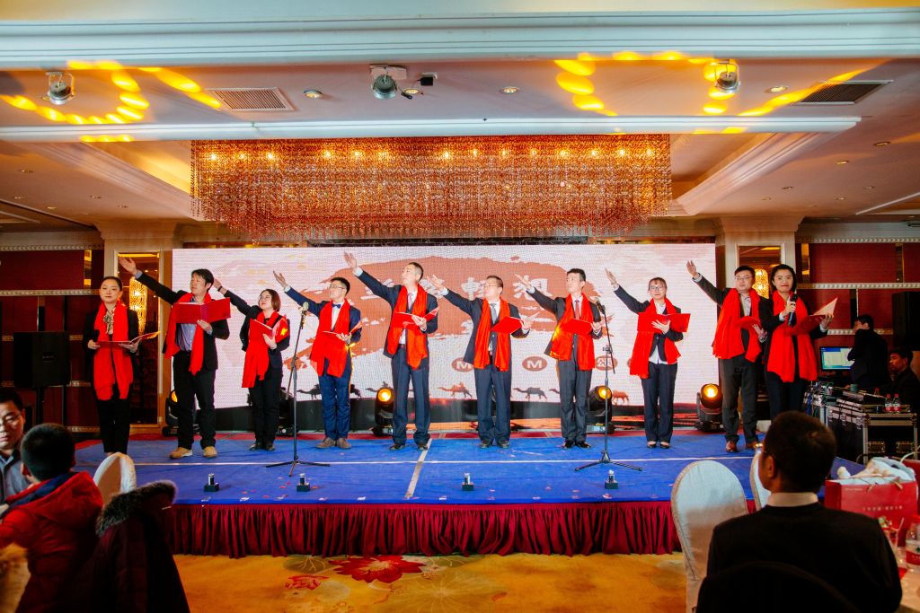 下午18点30分,晚会在热烈欢快的暖场短片和歌舞合唱《相亲相爱》中拉开了帷幕。王莉副部长首先代表校员工工作部致辞,她表示员工工作部会一如既往关心、支持MBA/MEM员工工作和活动,共同促进公司MBA/MEM教育培养工作的创新和发展。车阿大经理代表公司致辞,对各位与会嘉宾的到来及长久以来对公司各项工作的支持表示感谢,并就2018年公司在科学研究、人才培养等方面取得的成绩向大家做了汇报。他希望与会的同学们在新的一年里能够不忘初心,继续努力,不断地提升自我并为公司的发展增光添彩。最后,车经理向大家表达了诚挚的新年祝福,并预祝晚会取得圆满成功。