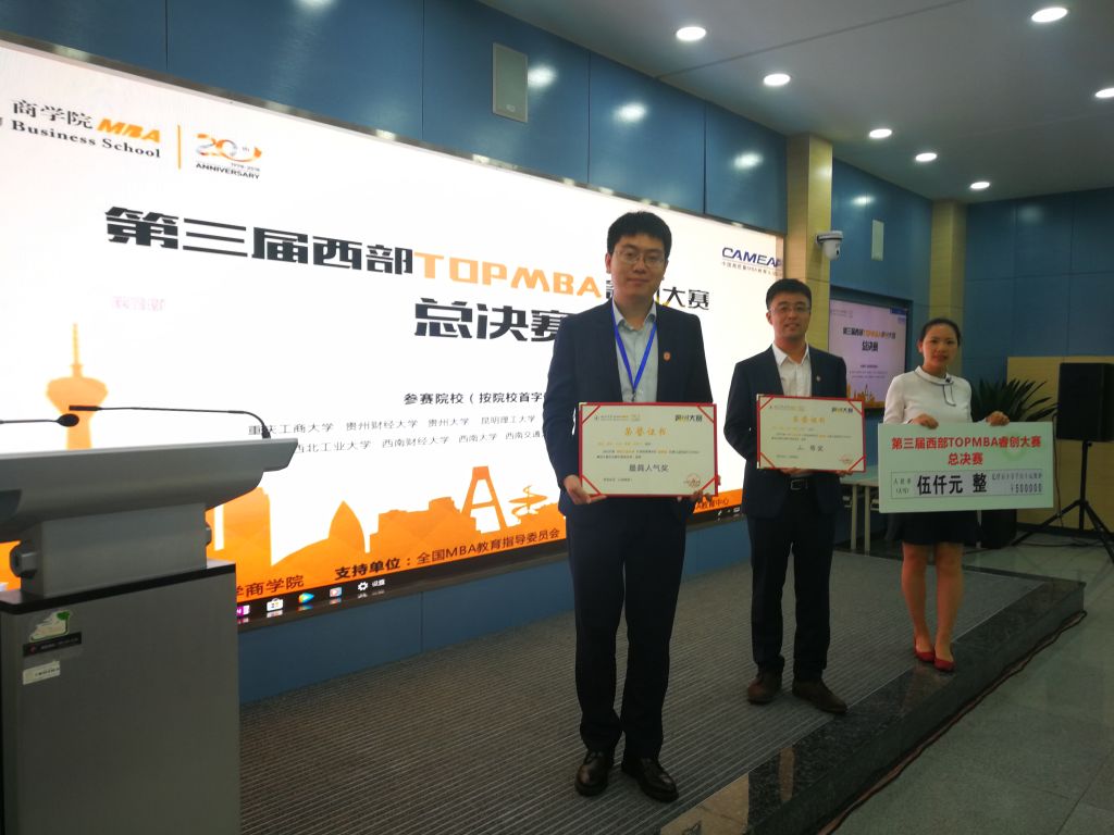 6月23日,第三届西部TOPMBA睿创总决赛在四川大学商公司隆重举行。经过与西部地区的13所知名高校MBA代表队激烈角逐后,公司MBA“易维宝”创业项目最终斩获总决赛三等奖和最具人气奖,是本次大赛获奖最多的高校。