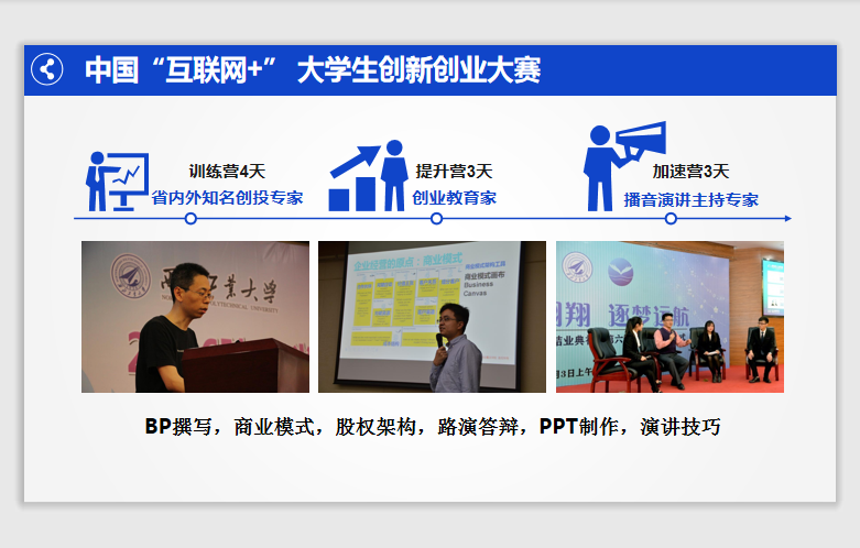 顾老师具体从参赛条件、参赛内容、参赛日期和赛事奖励等方面详细介绍了创新创业大赛的参赛流程,并用往年参赛的经验与成果激励大家参与到创新创业大赛中,充分发挥西工大人三实一新的精神。