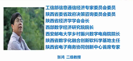 张鸿,二级教授,陕西省教学名师,省级高层次特支计划人才。现任中国高校市场学会农产品营销研究中心副主任,联合国世界丝绸论坛数字经济研究院副经理,陕西省经济学会会长,西部数字经济研究院经理,乡村振兴与数字电商公司经理。兼任国家工信部信息通信经济专家委员会委员,国研中心国声智库学术委员会委员,陕西省委省政府决策咨询委员会委员,陕西省数字经济与产业融合创新中心首席专家,陕西省电子商务协同创新中心首席专家。