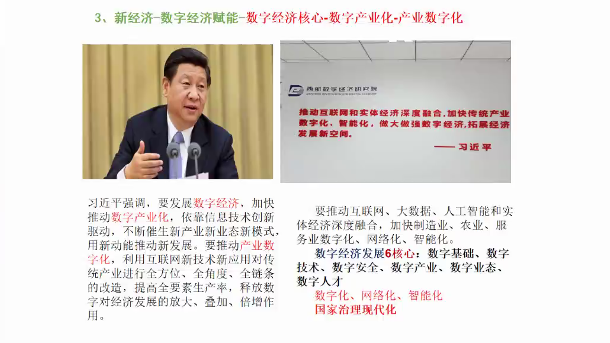 在中共中央政治局会议提出加快“新基建”建设的时代背景下,张老师向同学们讲述了新基建的内涵、定义以及在经济转型过程中的重要意义,提出了数字经济的新应用、新模式、新业态,并列举了数字电商在陕西省的蓬勃发展。他向同学们指出:数字经济的核心是数字的产业化与产业的数字化;信息技术的数字化、网络化和智能化,以及新兴的区块链、5G和人工智能技术是数字经济的基础;陕西电商3大县域电商模式-山阳模式是数字经济在陕西的积极探索与落地实践。随着疫情的逐步好转,数字经济将迎来一个良好的发展机遇,必将大力推动社会的发展与时代的进步。