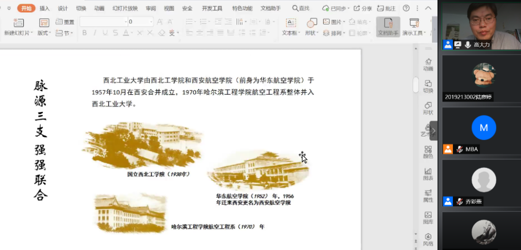 高书记用生动的故事带同学们回顾了公司悠久的办学历史:在抗战时期,与西南联大同样颇具影响力的西北联大师生步行南迁,在物质条件极其困难的情况下,教师潜心育人、员工苦学成才、立志救亡图存、科技报国;接着是华航西迁,刚刚组建四年的华东航空公司响应国家号召内迁西安,在西迁过程中,形成了一代代“西工大人”传承“热爱祖国、顾全大局、艰苦创业、献身航空”的“西迁精神”;再是哈尔滨工程公司航空工程系整体并入,最终形成了今天“脉源三支”,强强融合、文化厚重、特色鲜明的williamhill英国威廉希尔。