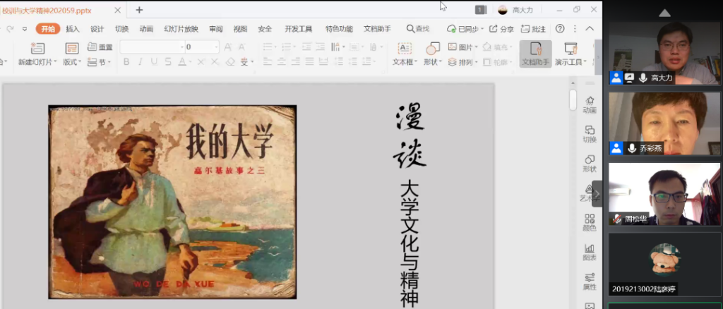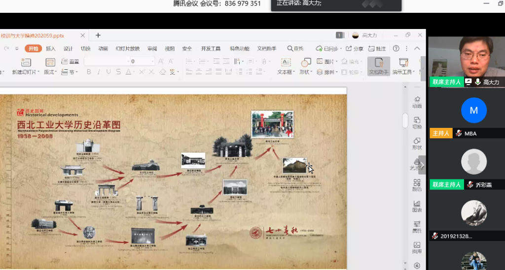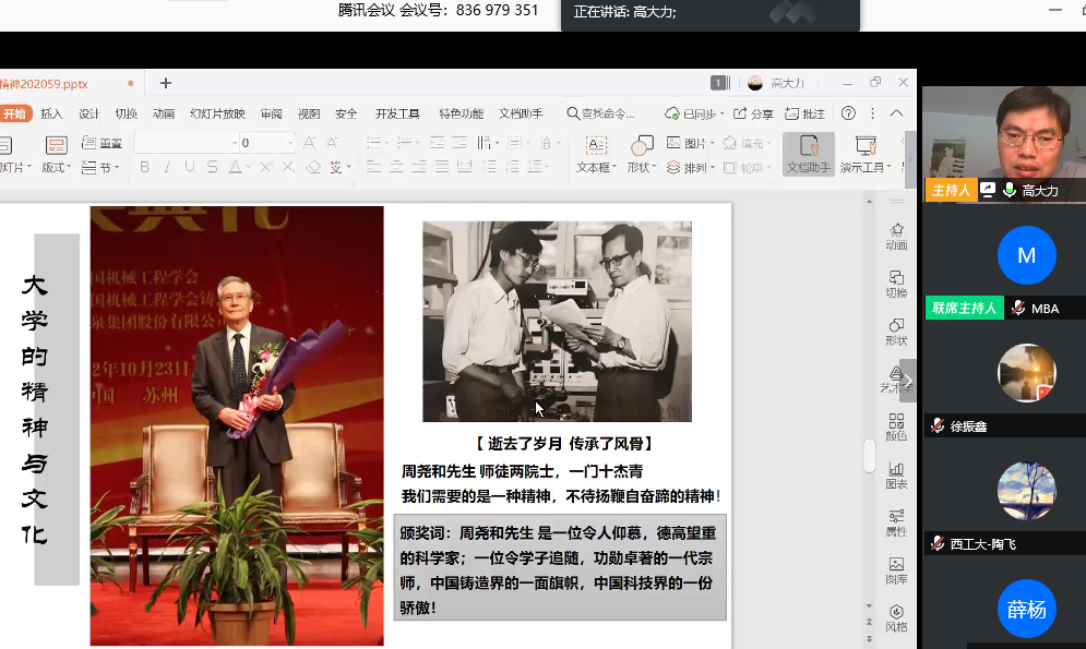 5月10日上午,公司邀请力学与土木建筑公司党委书记高大力为专业学位研究生做《漫谈大学文化与精神---williamhill英国威廉希尔校史校情》的讲座,会议由公司党委书记乔彩燕主持,约200名员工在线聆听了讲座。