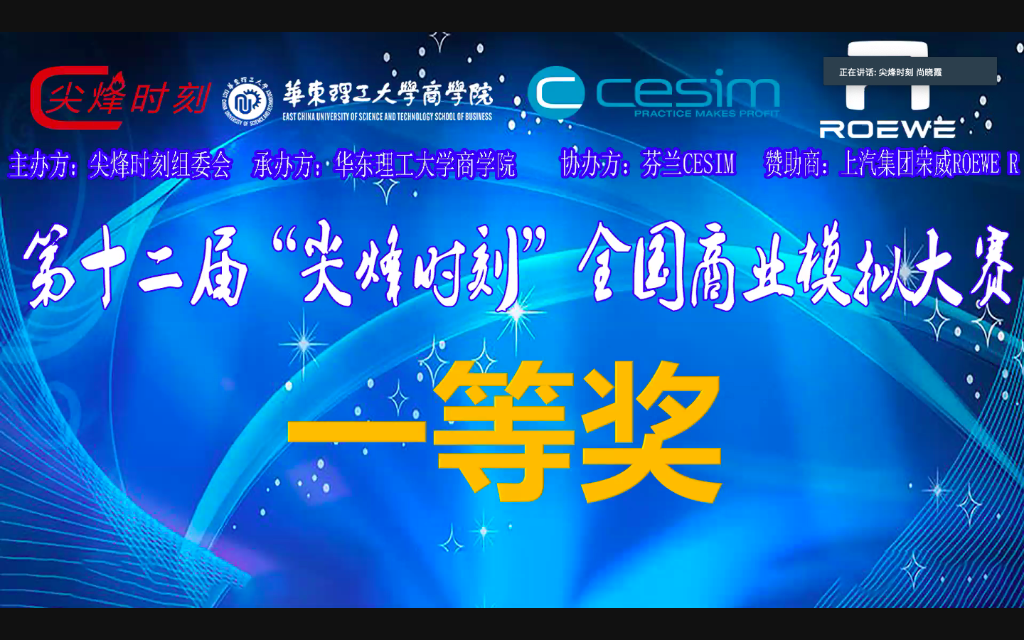 9月9--13日,第十二届“尖烽时刻”全国商业模拟大赛总决赛通过zoom平台线上成功举办。由公司2019级MBA员工杜天骄,杜昱辰、石玥祎、刘文承组成的“红日初升”队,通过商业路演视频拍摄、英文团队介绍、平台商业模拟运营、商演答辩等环节的综合比拼,最终喜获MBA研究生组全国一等奖和最佳视频奖两项殊荣。公司也是西部地区唯一一所获得全国一等奖的高校。